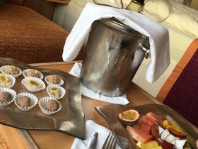 Somit 2 Flaschen Sekt (haben wir ins French Kiss zum Frühstück mitgenommenen an den Seetagen und dort eine gekühlte serviert bekommen), 2x Pralinen und 2x Essen um unter 60 EUR. Jederzeit wieder, auch wenn es ja 2018 ein paar EUR teurer wird... -