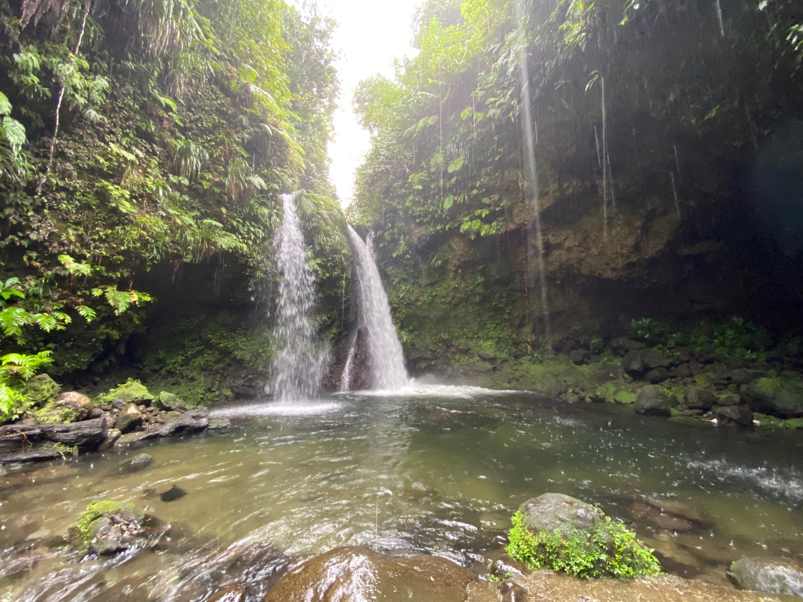 Wir sind dann spontan mit dem Taxi gefahren, kKosten, sagen wir mal so, wir hätten bei längerem Suchen ggf was Billigeres gefunden, aber ich hatte Geburtstag und wir wenig Lust, also direkt am Anleger mit dem Taxi los. Wir wollten zum Emerald Pool und Jako Falls, wollten sie pro Person 45Dollar als shared Tour, haben dann 150.-$ zu dritt private Tour bezahlt und 4 Stunden waren wir unterwegs. Fahrer hiess "Father" und war sehr informativ.