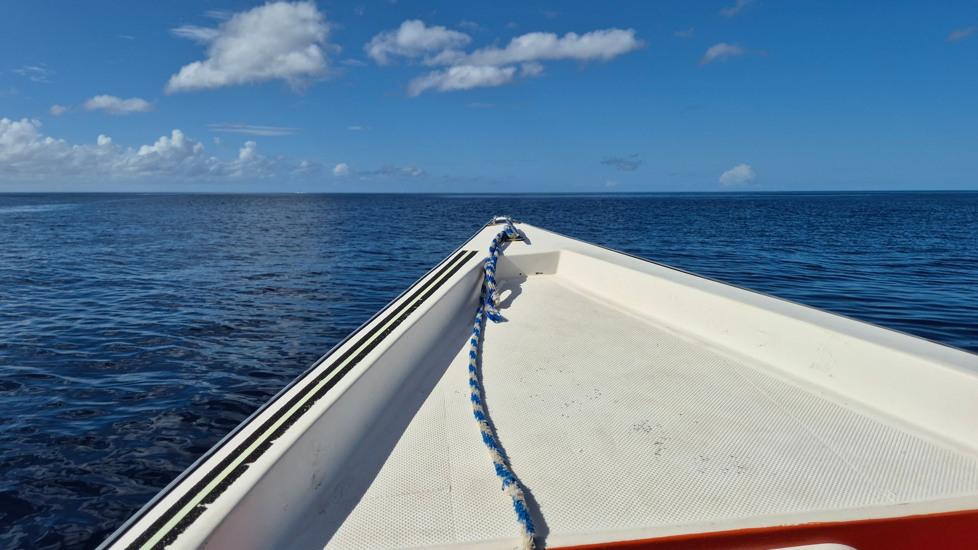 Bevor es aufs Boot ging, wurden jedem noch deutschsprachige Informationen über die Pottwale und Instruktionen zur anstehenden Fahrt ausgeteilt.Mit vorgeschriebenen Schwimmwesten ausgestattet, bestiegen wir unser Boot. Aufgrund der kleinen Gruppengröße hatten wir natürlich ein ebenso kleines und daher auch wendiges Boot, was uns im Verlauf noch zum Vorteil werden sollte. Mit guter Geschwindigkeit ging es direkt auf's Meer, wo wir in weiter Entfernung noch ein paar andere Boote erblicken konnten. Direkt mit uns an einer Stelle waren aber nur drei weitere, kleine Boote. Das große Boot der AIDA-Tour war nicht so wendig, wie unseres und daher nicht flexibel beim Ändern der Route.