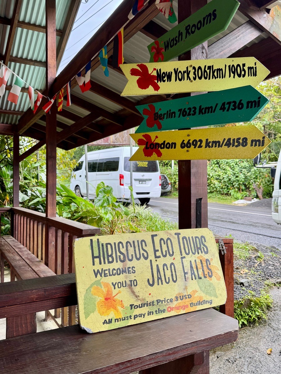 Wir hatten über Tripadvisor den Ausflug "Peppers Choice" gebucht. Abholung war gegenüber dem Hafenausgang, hat gut geklappt, mussten nur 10min. warten, Pepper ist dort ein Begriff. Wir waren nur zu viert unterwegs, noch ein amerik. Paar, das eine Woche im Hotel auf Domenica war, fuhr mit.