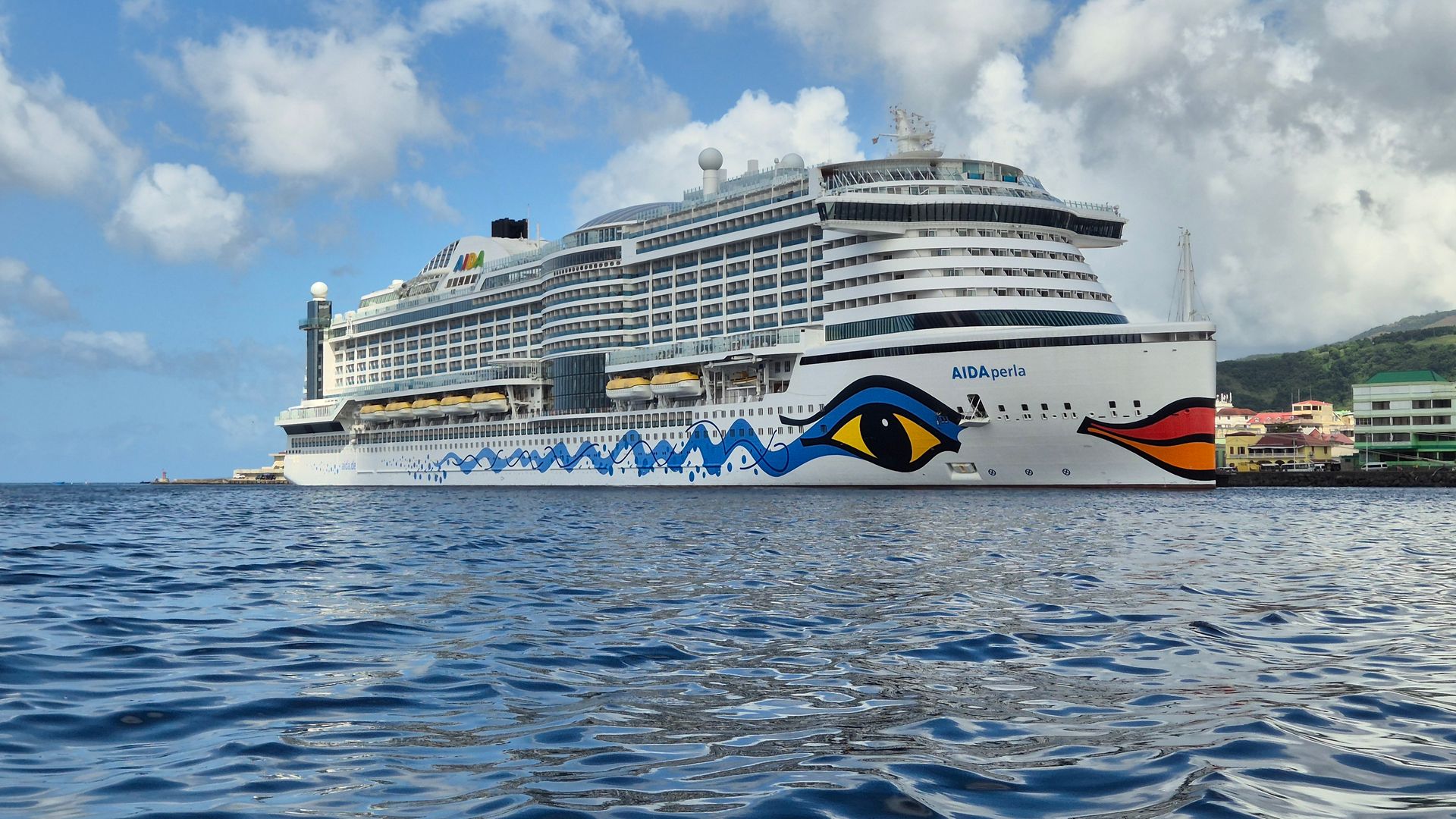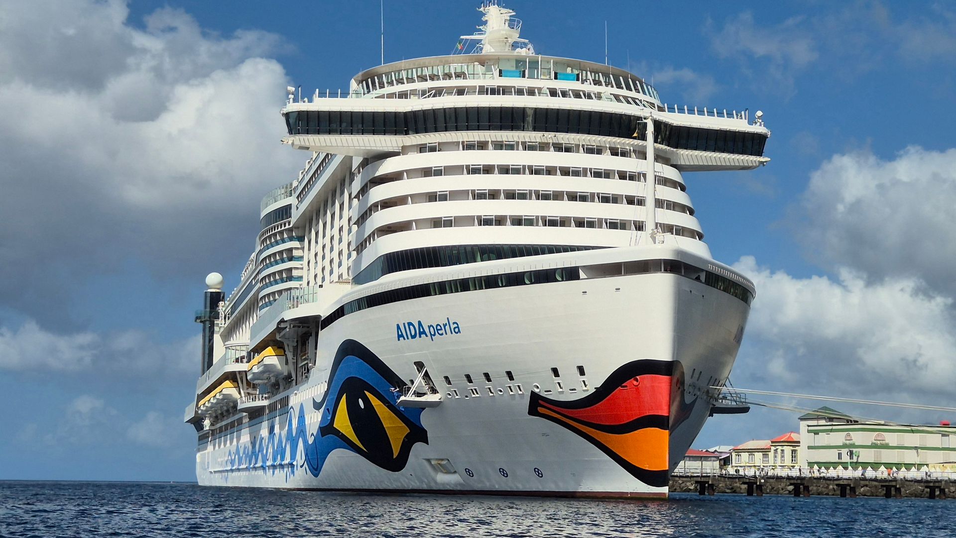 Nach diesem wirklich beeindruckenden Erlebnis fuhren wir mit angenehmen Fahrtwind zurück zum Hafen, machten aber noch einen Halt vor dem Bug unserer AIDAperla. Hier durfte nämlich der obligatorische und typische Rumpunsch nicht fehlen. Gegen Mittag erreichten wir nach ca. 3 1/2 Stunden auf dem Meer den Anleger.