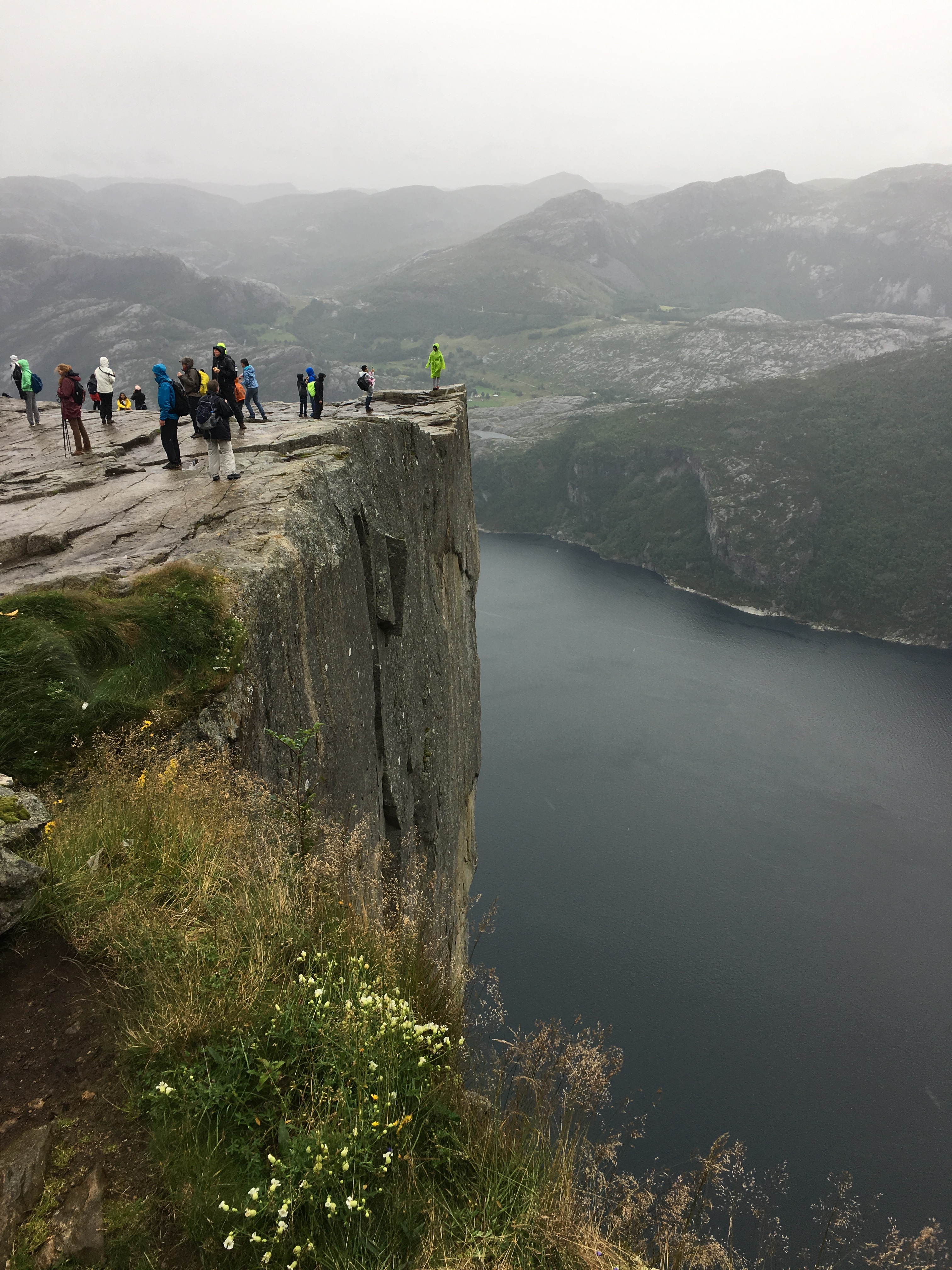 Ich war mit meiner Tochter (12 Jahre) am 9.7.19 oben. Wir waren mit der MSC Orchestra unterwegs und haben alles individuell organisiert. Wir nahmen die Fähre 9:00 Uhr ab Fiskepieren. Gegen 10:30 Uhr begann unsere Wanderung. Den Hill Trail haben wir beim Aufstieg verpasst und nahmen ihn auf dem Rückweg. Wir hatten noch Zeit für einen kleinen Abstecher wo das folgende Foto entstand.