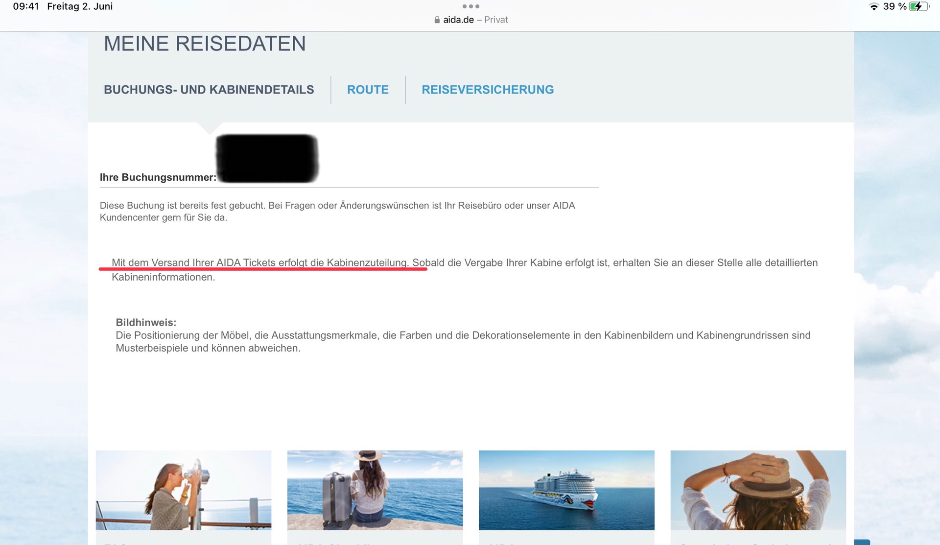 Aida Blu 47 Tage vor Abfahrt auch noch keine Zuteilung