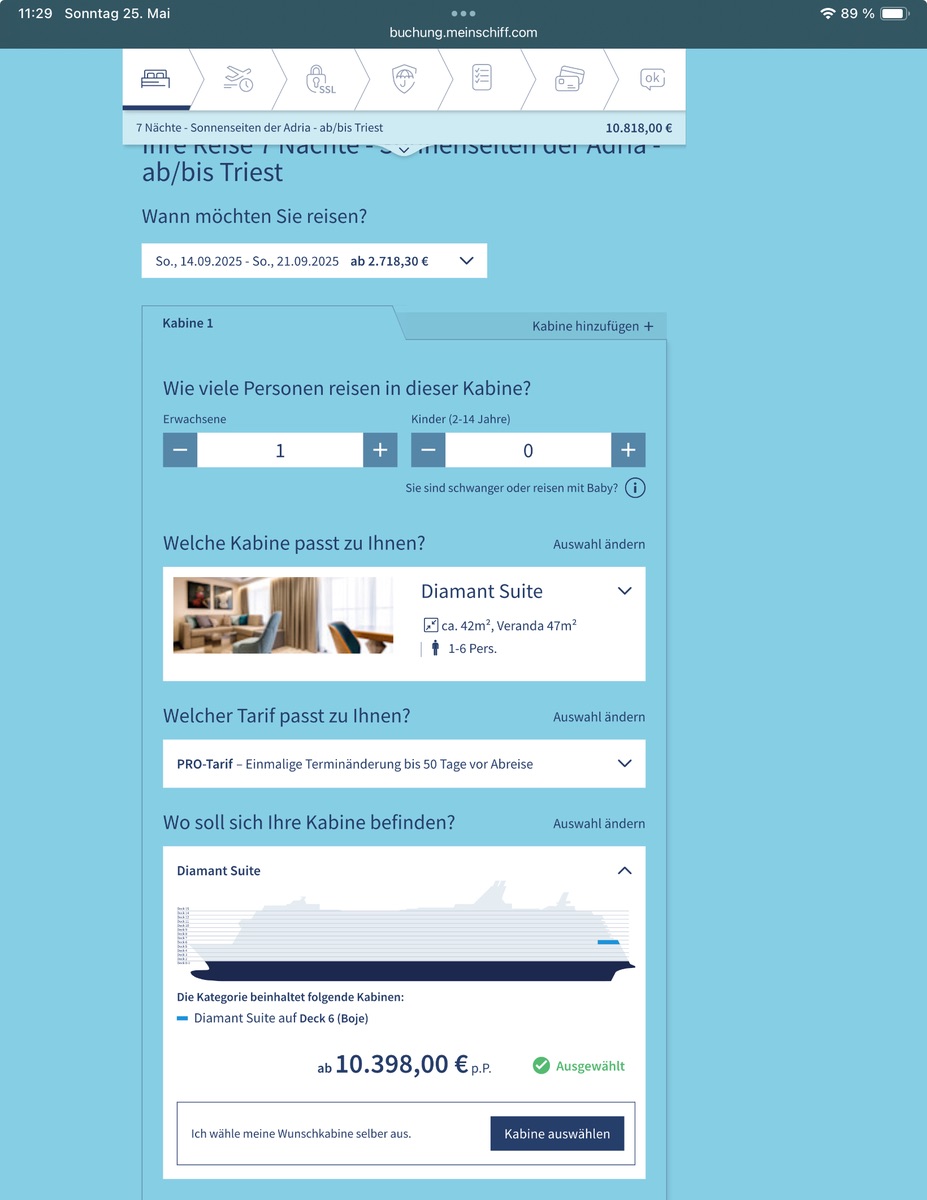 Alles anzeigenAlso ich bekomme ja bei AIDA für Reisen im September hier und da schon Schnappatmung, z.B.