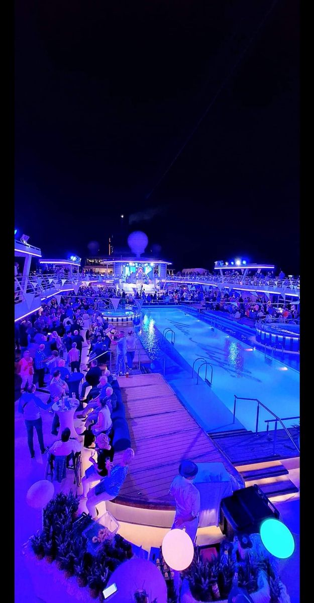 Eine Abschiedsparty gab es meines Wissens bei unserer Ostseeroute nicht, aber ein Abschiedsevent auf dem Pooldeck.