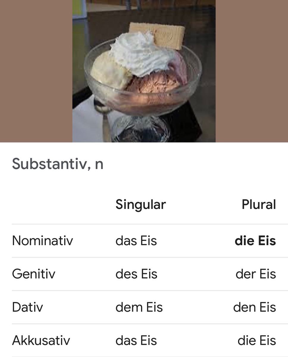 P.S.: Wie wird eigentlich der Plural von Eis gebildet, wenn man nicht auf die Vokabel Eiscremes ausweichen möchte???