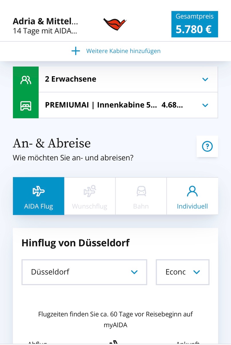Das sind trotzdem noch 600 Euro mehr bei Aida