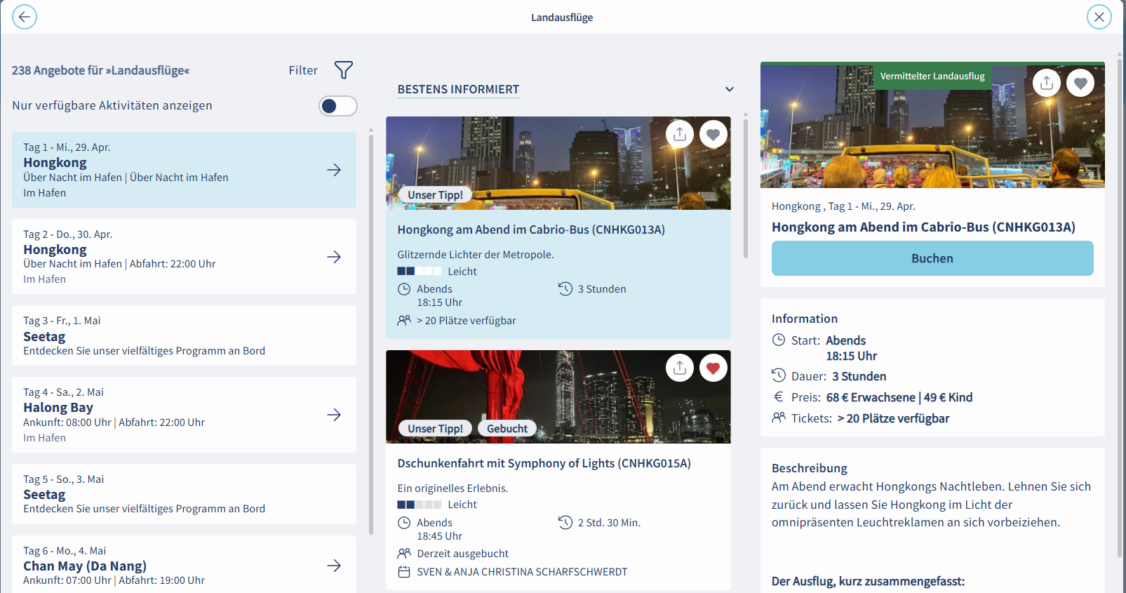 Eine Buchungssession um 00:01 am Start der Buchungsfreigabe bei Landausflügen schadet nie.