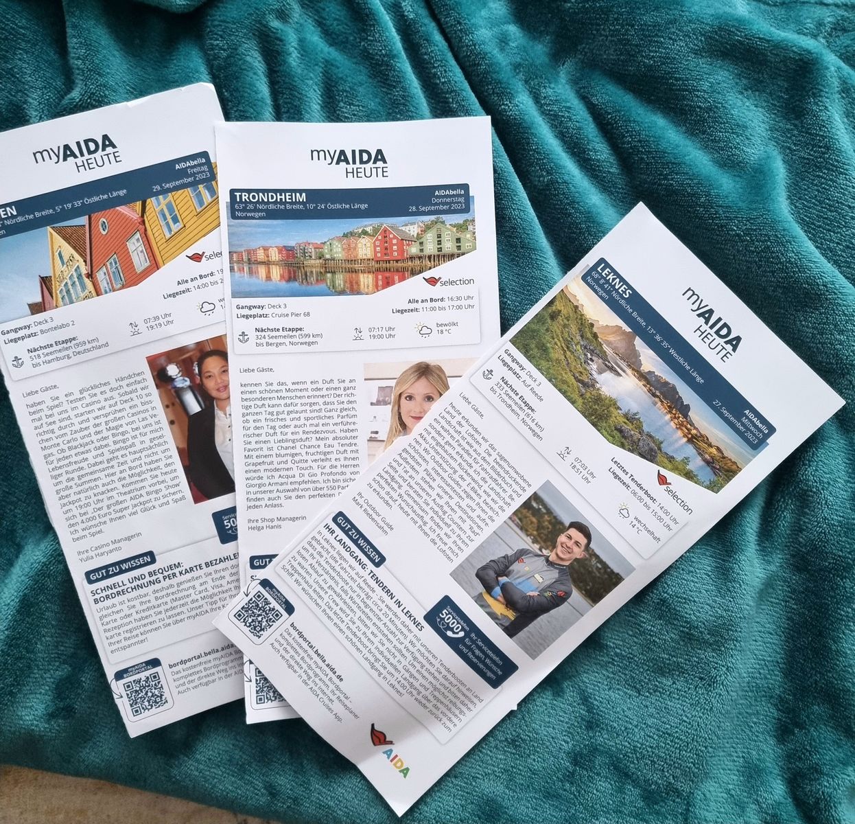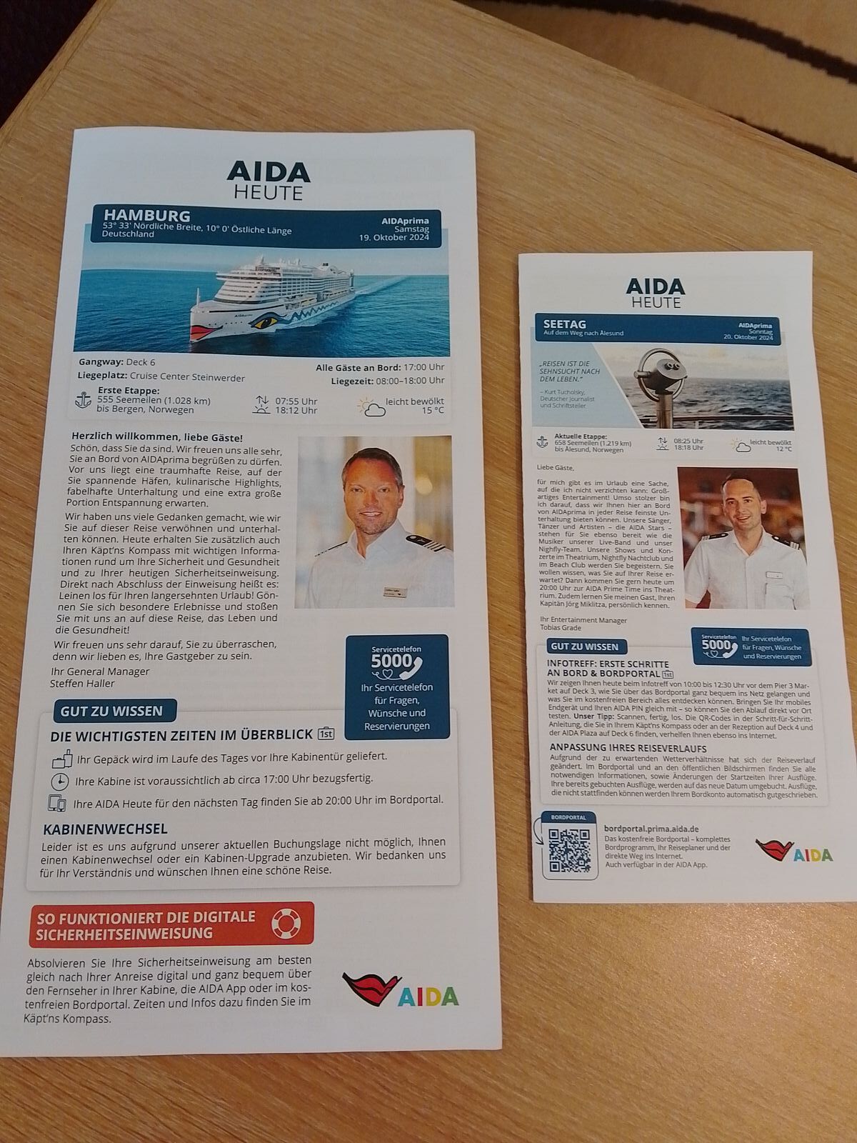 Mal ein Größenvergleich die AIDA Heute vom Anreisetag im Originalformat und das Miniformat.