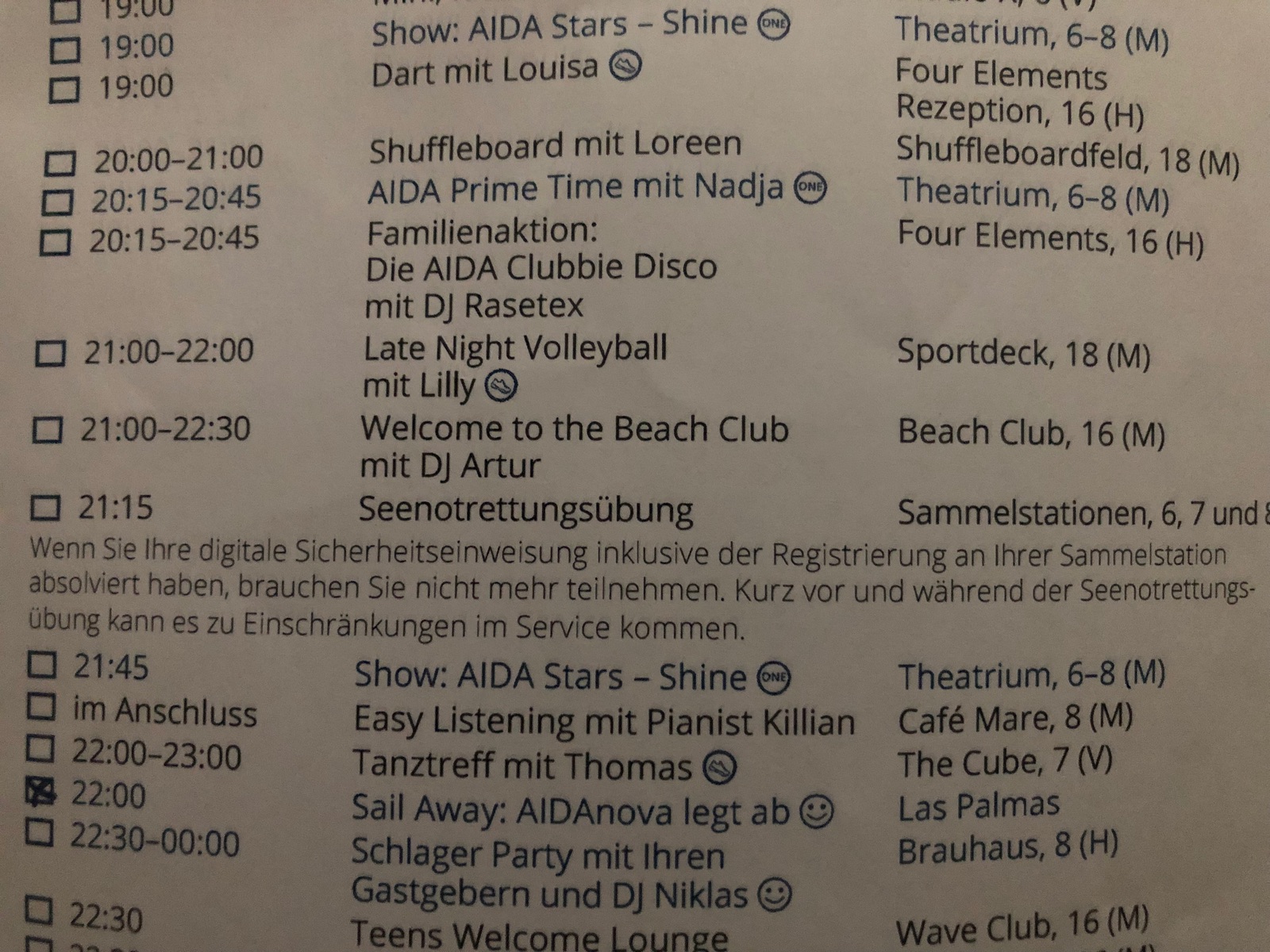 Das mag sein, wenn aber so einige Passagiere diese Idee haben, ist keine mehr da. Diese Erfahrung habe ich gemacht. Und ehrlich gesagt habe ich Urlaub und möchte nicht der AidaHeute nachjagen und ständig an der Rezi fragen müssen - sondern würde mich freuen, wenn diese mich an der Kabinentür empfängt. Ich habe auch gern Urlaub vom Handy und möchte die AidaHeute NICHT digital lesen.