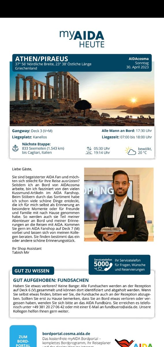 Die AIDA Heute die man aufs Handy runter laden kann hat ein gutes Format, man kann ganz einfach runter Scrollen und sieht jede Seite und bekommt dadurch jede Info