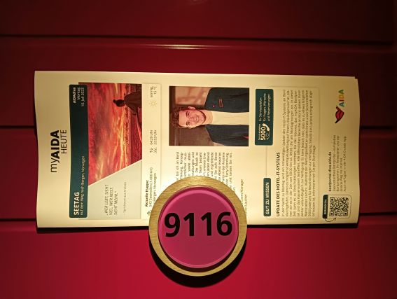 Zu meiner großen Freude steckte während meiner AIDAdiva-Tour vom 8. - 15. Juli die farbige "AIDA heute" jeden Abend an der Kabinentür.
