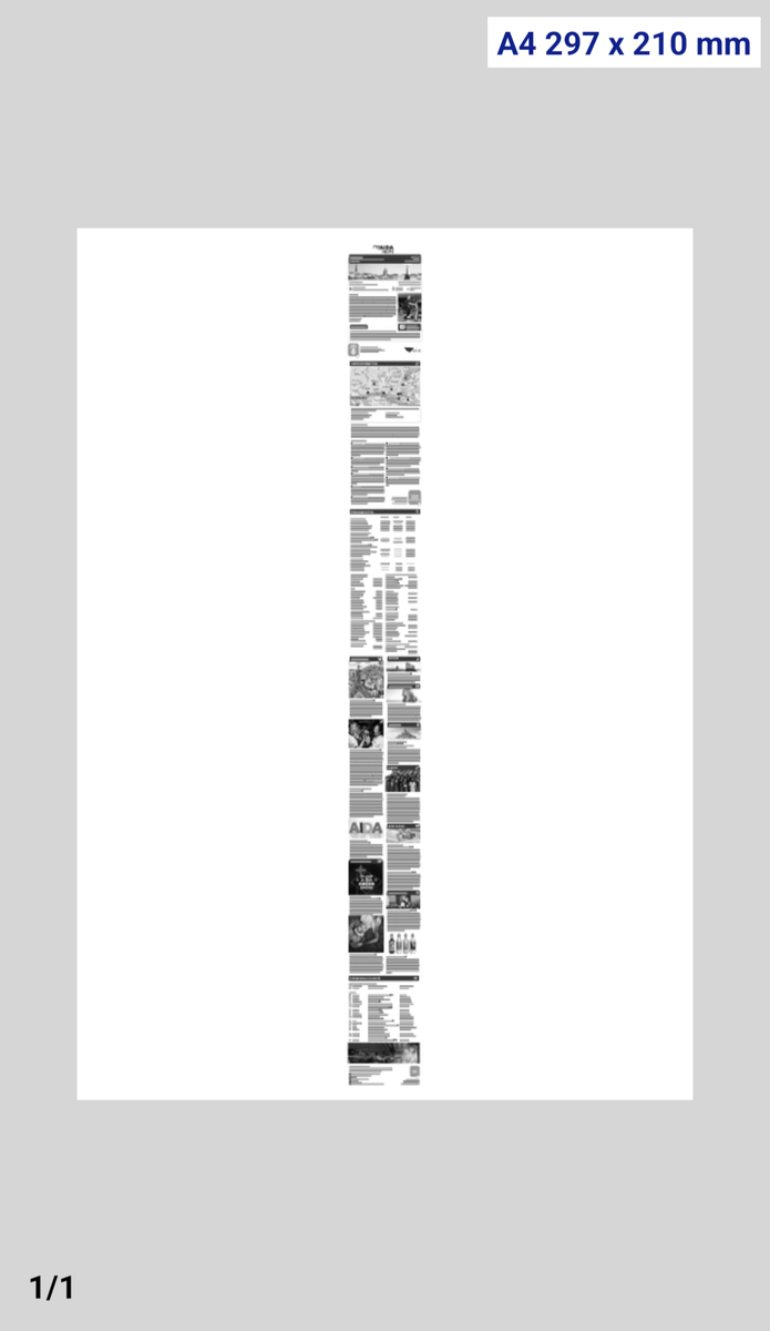 Es ist eine Seite A4 und alles ganz klein, ein schmaler langer Streifen in der Mitte des Blattes