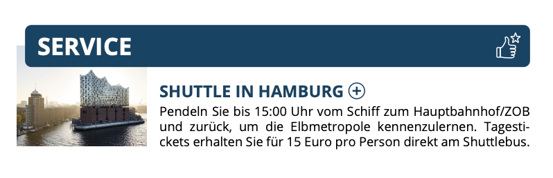 Für die Perla im September 25 konnte ich den Shuttle Bus nach Steinwerder und zurück schon buchen.