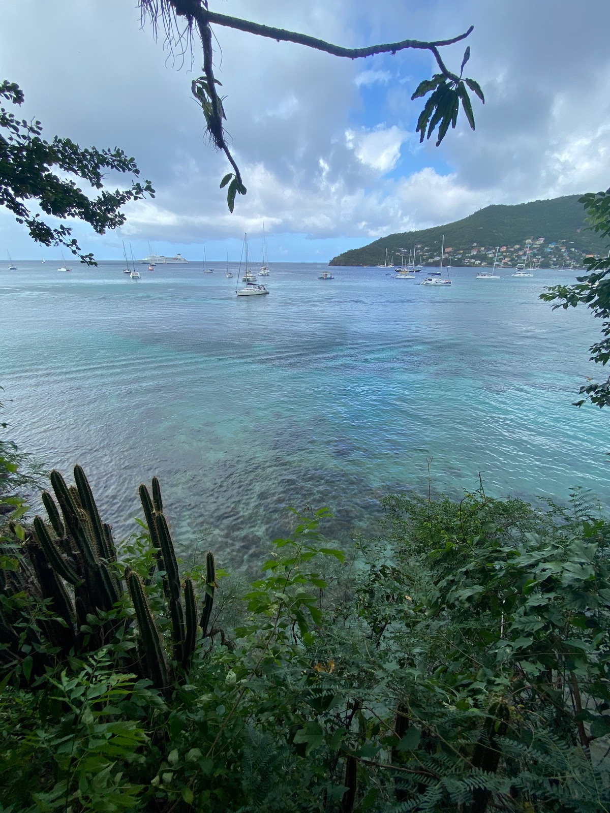 . Es war echt witzig. An den Dark View Falls waren wir dann fast alleine. Hier nahmen wir ein Bad und bekamen so viel Zeit wie wir brauchten und wollten. Der nöchste Stopp war dann der Drehort von Fluch der Karibik. Es war schon ganz cool das mal zu sehen, aber ehrlich gesagt waren wir enttäuscht. Hätte und würde man das ganze etwas pflegen und erhalten könnte man hier richtig was draus machen! Weiter ging es zum Vermont Nature Trail. Zeitlich waren wir schon etwas im Verzug so das wir ihn nur zum Teil gehen konnten. Hier holte uns dann der obligatorische Regenschauer ein, aber im Regenwald war es etwas geschützt. Die Vegetation war schon beeindruckend. So etwas kennt man nur vom Amazonashaus im Zoo! Auf dem Rückweg sahen wir dann sogar noch die Königsamazone hoch über unseren Köpfen, Vincy hatte sie am "Schrei" erkannt. Letzter Stopp des Tages zum entspannen war der Buccament Beach. Vincy organisierte dann noch Rumpunsch bei einem Kollegen bevor es zurück zum Hafen ging.Es war ein toller Tag mit Vincy. Man merkte das er seine Insel liebt und es ihm eine Freude ist sie Touristen zu zeigen. Er geht auf Wünsche bei der Planung und auch vor Ort ein. Ausserdem ist es ihm ein Anliegen das jeder sicher zurück zum Schiff kommt und St. Vincent in guter Erinnerung behält.