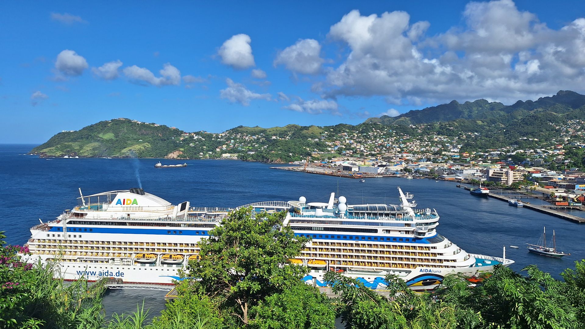 der nächste Tag führte uns mit der schönen MS 2 nach St Vincent , wo wir eine private Tour mit Fraser Taxi Tours gebucht hatten . Mit 12 Personen ging’s auf den Spuren von Fluch der Karibik zum dark view Wasserfall , zur Bucht von Wallibou und zum Bouccement Beach ( keine Ahnung , ob das so alles richtig geschrieben ist ) wir hatten einen superlustigen Guide und einen tollen Tag auf der Insel .