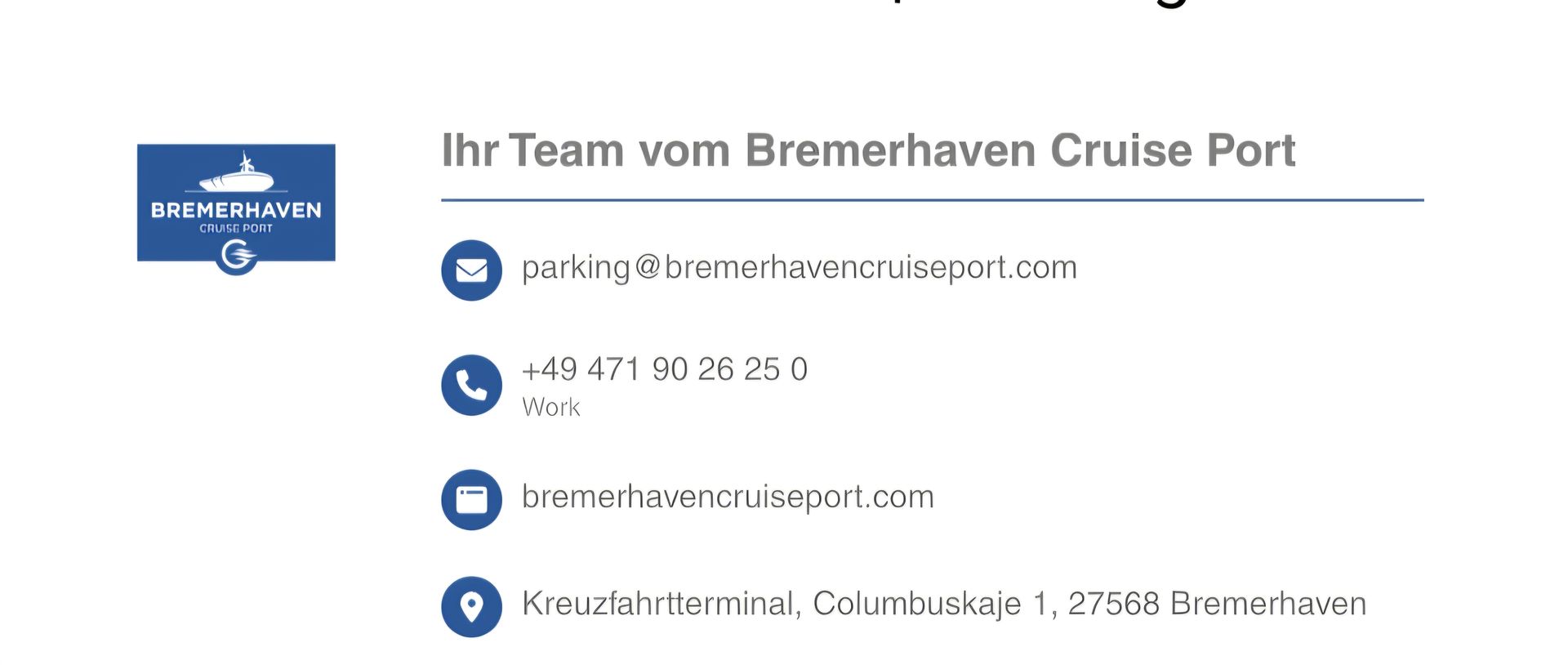 E-Mail-Adresse: parking@bremerhavencruiseport.com