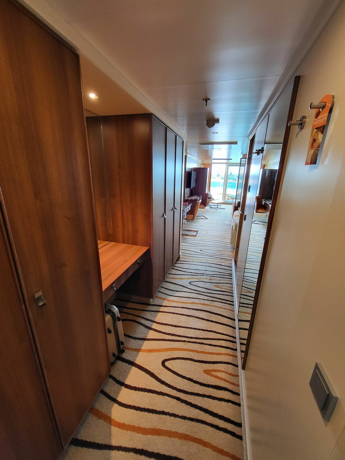 Gilt übrigens auch für die jeweils (backbord/steuerbord) zwei Suiten auf dem Patiodeck.