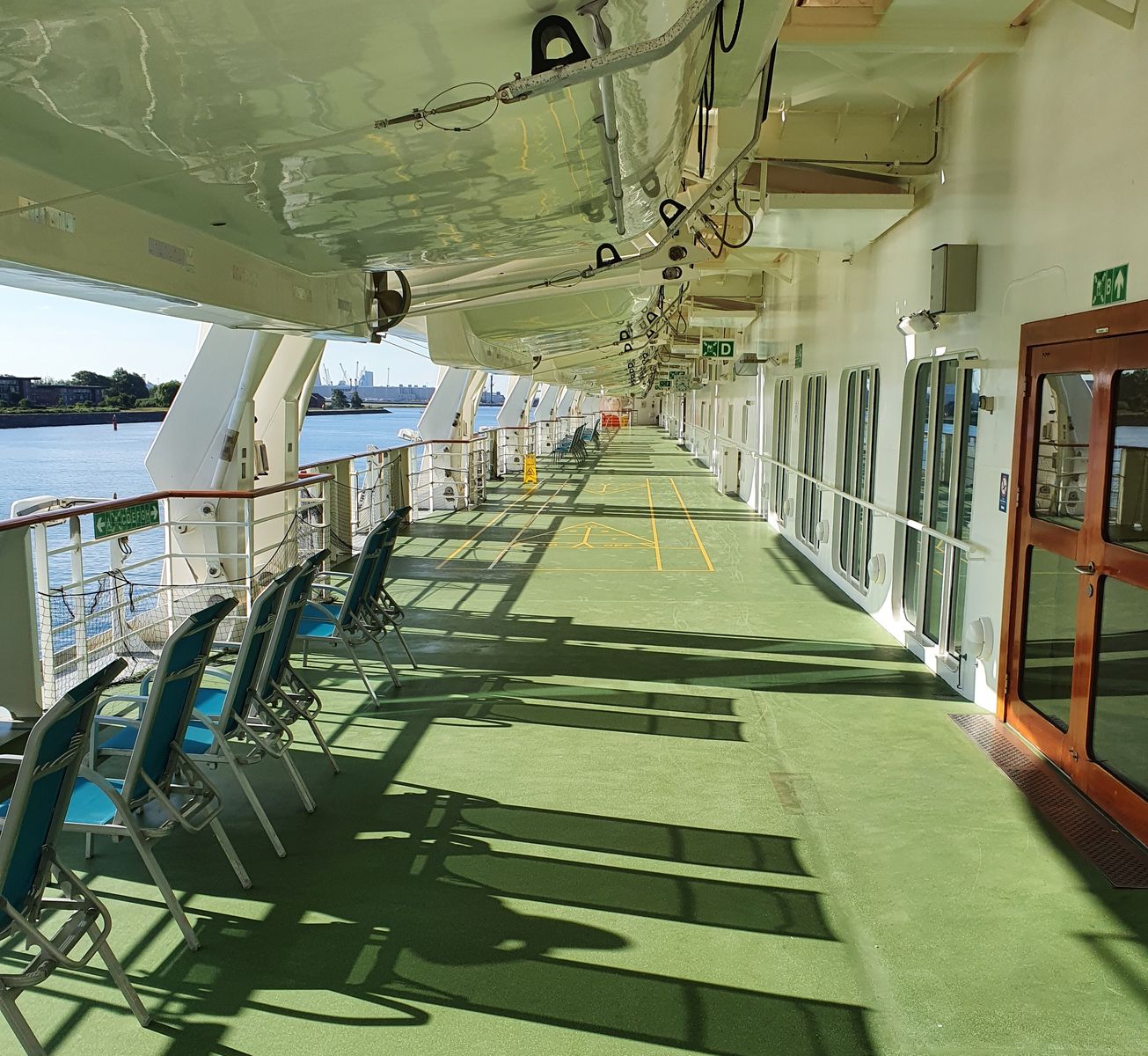 Das ist so toll und nicht so voll wie oben an Deck, das Auslaufen habe ich immer von dort erlebt, toll wenn man so dicht am Wasser ist