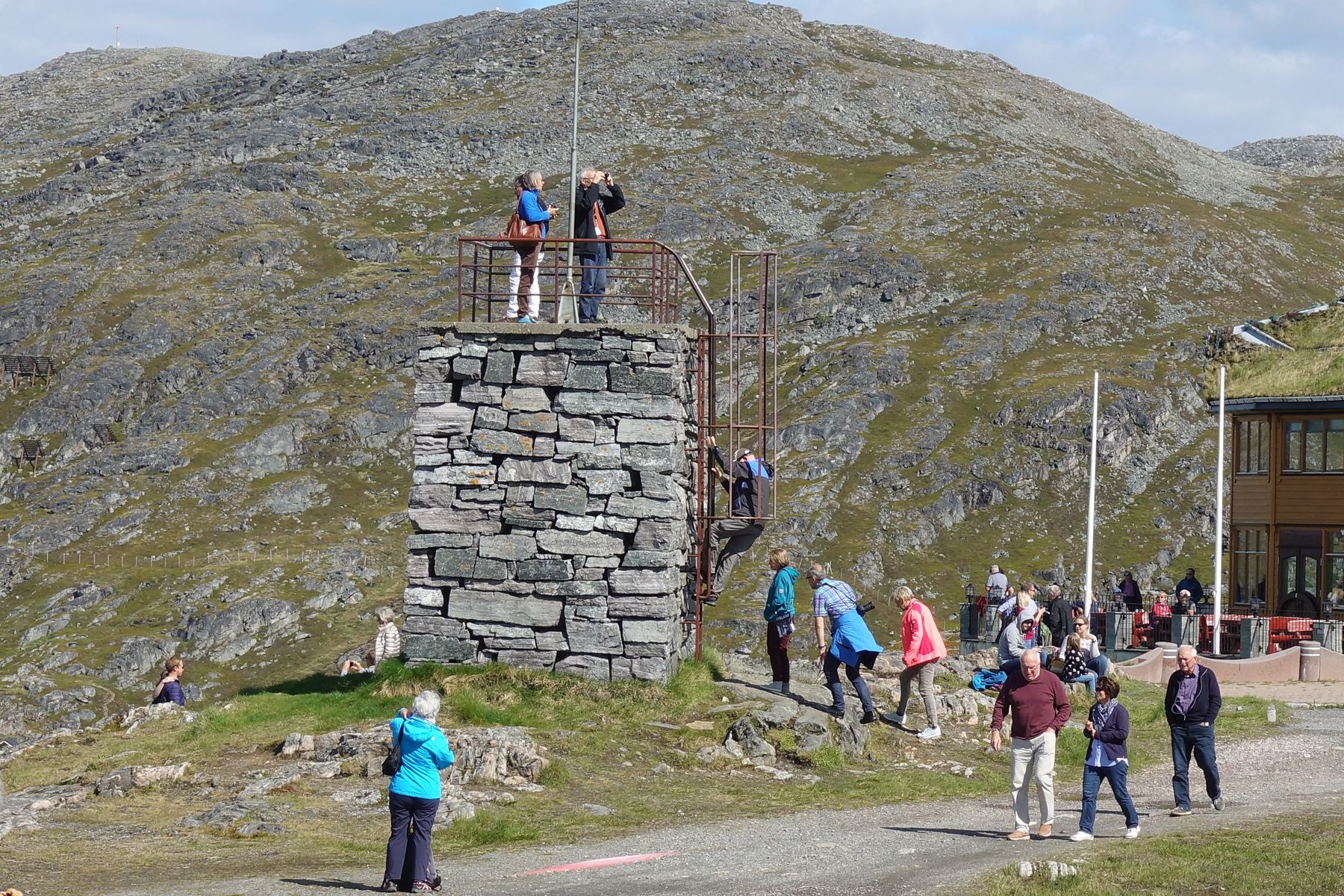 des Erdumfangs erinnert. Dort genießen wir die Aussicht und die