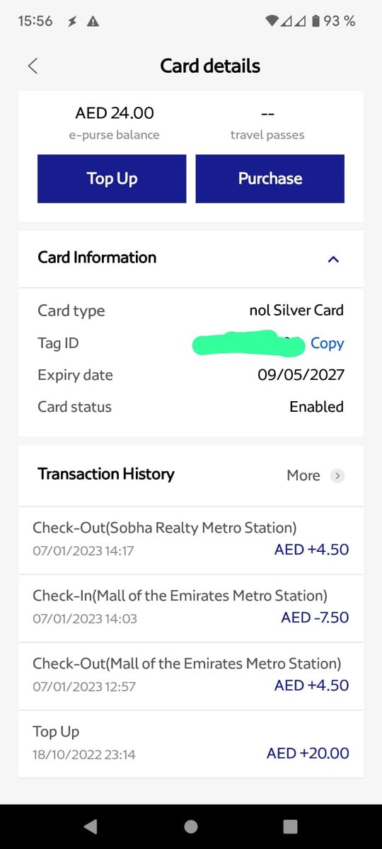 Also ich kenne in Dubai nur die Nol Card , die wir während unseres Dubai Urlaubs letzten Mai rege genutzt haben . Man lädt sie auf mit einem beliebigen Betrag auf und muss dann keine Tickets einzeln ziehen . Beim entwerten wird dann pro fahrt automatisch der Fahrpreis abgezogen . Geht für Metro , Bus und Tram