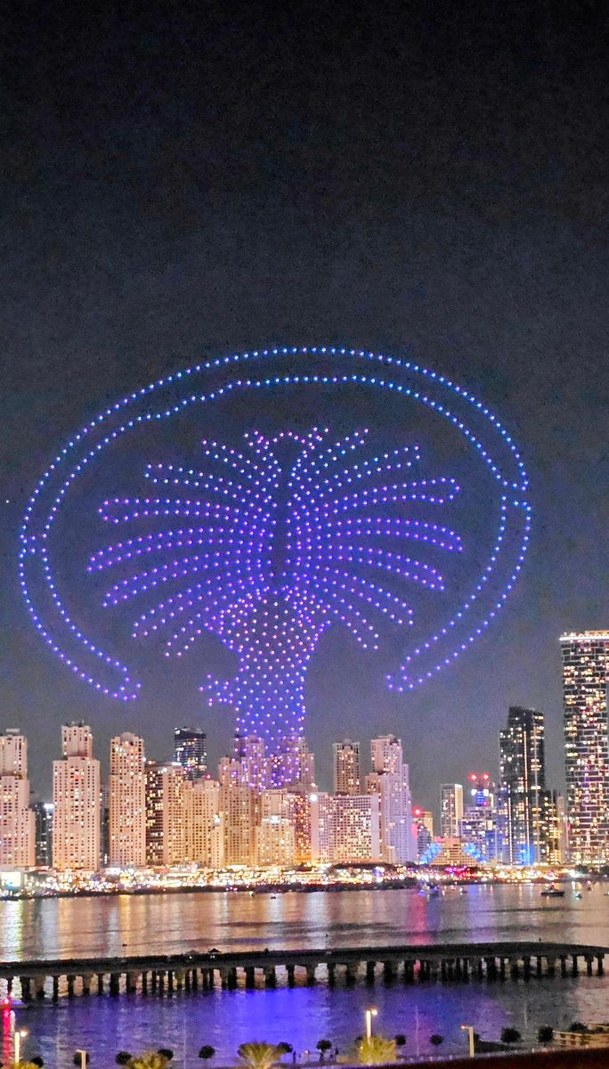 Die Drohnenshow war bei meinem letzten Abend in Dubai auch zu sehen