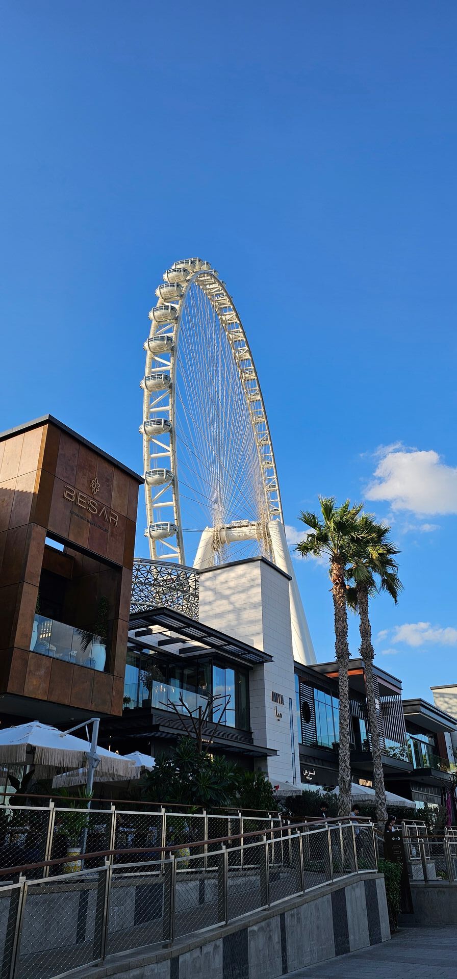Unsere Tochter wohnte ja drei Jahre in unmittelbarer Nähe, JBR = Jumeirah Beach Resident, mit Blick auf das Riesenrad.