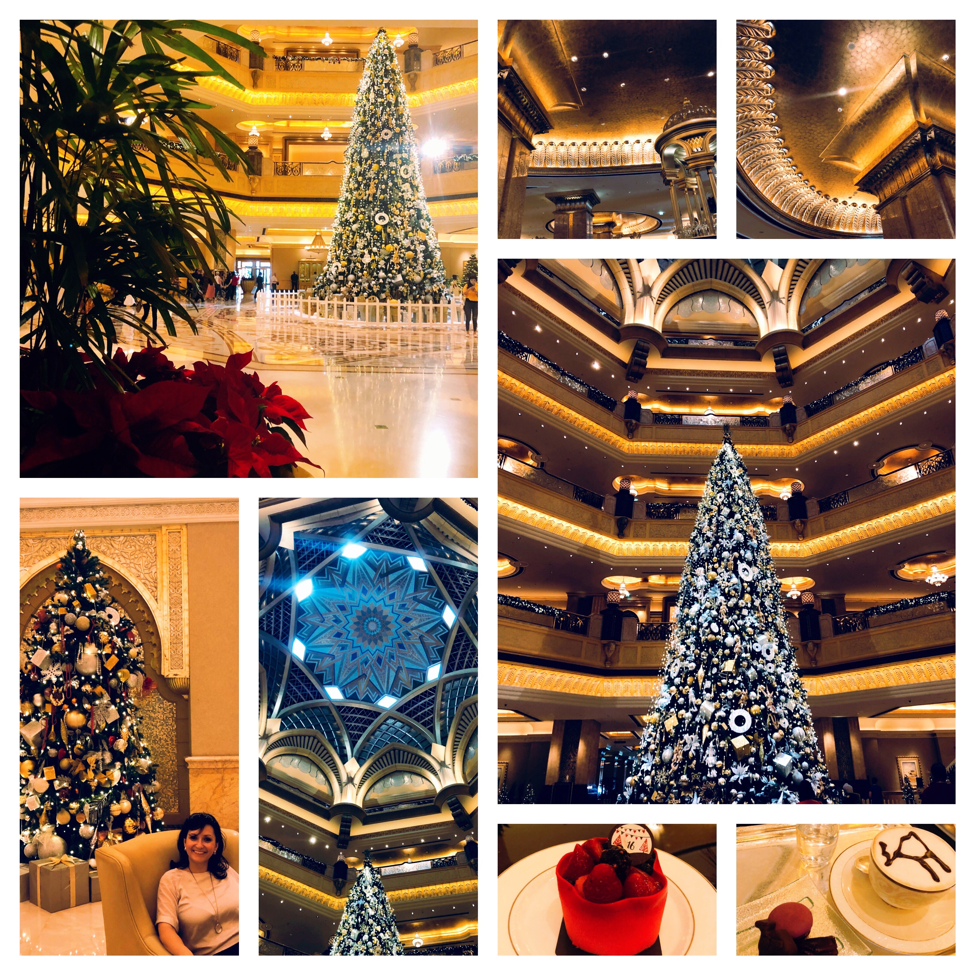 Wir sind am Anreisetag gegen 11 Uhr los mit dem kostenlosen Shuttlebus zur World Trade Center Mall und von dort weiter mit dem Taxi entlang der Coniche zum Heritage Village, wo man das alte Abu Dhabi kennenlernen kann. Dann haben wir ein Taxi genommen, das uns zuerst zu einem schönen Aussichtspunkt auf Break Water Island gebracht hat, wo man die Skyline von Abu Dhabi, den Palast und das Emirates Palace Hotel toll sieht. Anschließend haben wir das beeindruckende Ambiente des goldenen Emirates Palace Hotels mit der beeindruckenden Weihnachtsdekoration genossen und uns den legendären Camelchino und Kuchen mit Blattgold gegönnt. Der Ausblick auf die Skyline vor dem Emirates Palace ist auch toll. Zuletzt ging es als absolutes Highlight zur Scheich Zayed Moschee. Diese es atemberaubend schön bei Tag und Nacht. Ein Taxi brachte uns gegen 15.30 Uhr wieder zum Schiff. Insgesamt haben die Taxifahrten an diesem Tag ca. 170 Dirham gekostet.