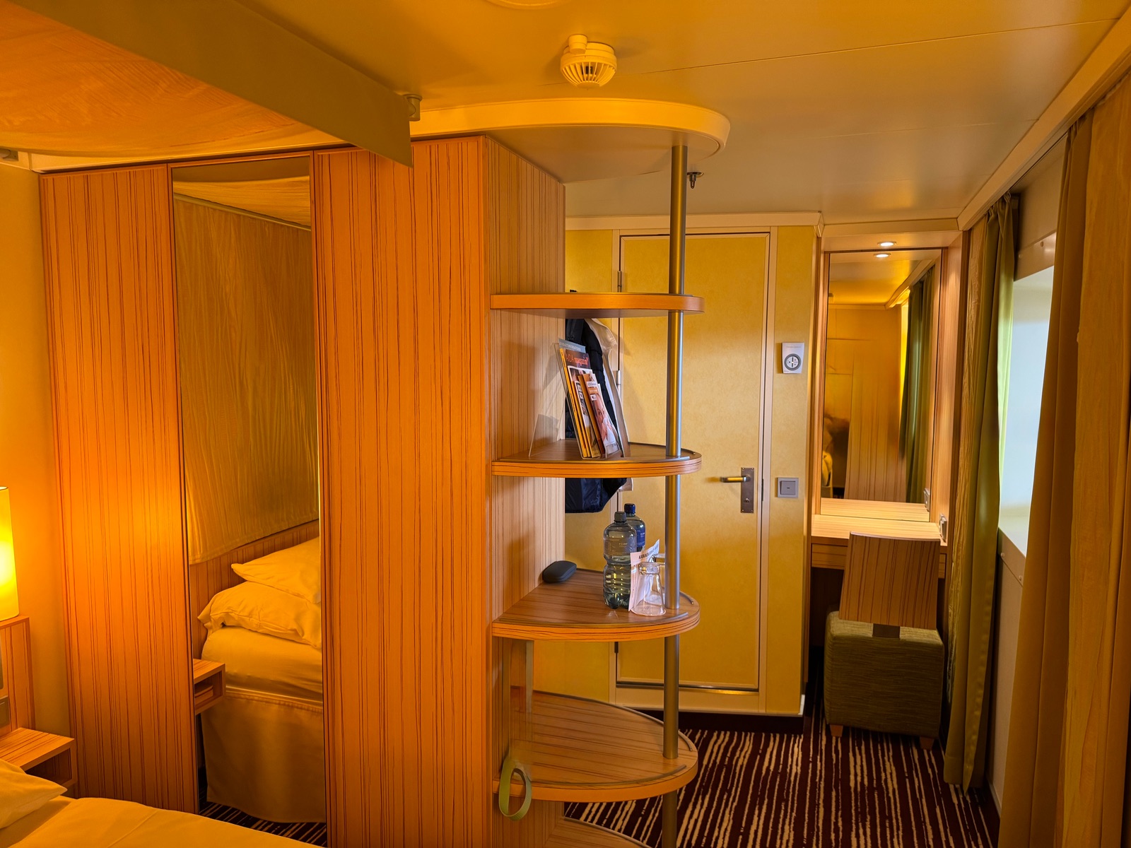 Die Kabine befindet sich auf der Steuerbordseite in kurzer Entfernung zum Treppenhaus und den Aufzügen.