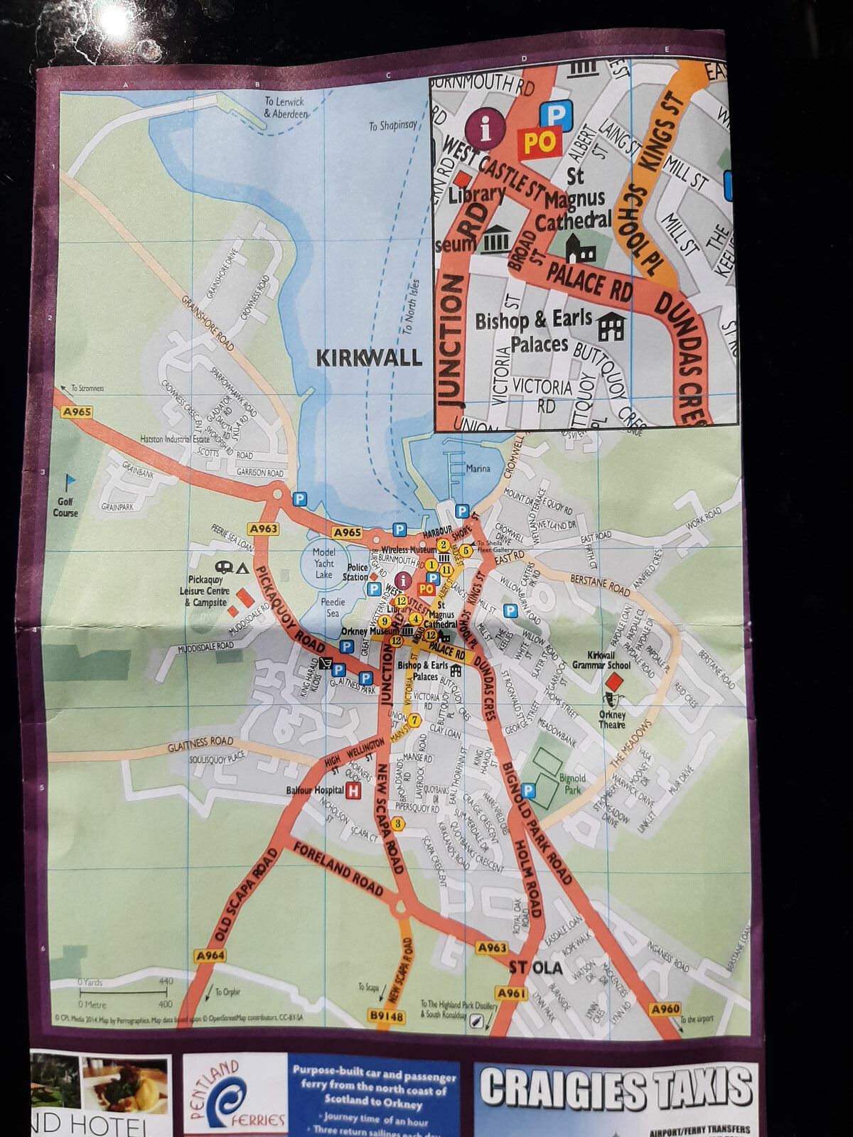 (Dateianhänge: Inselplan und Ortsplan Kirkwall)