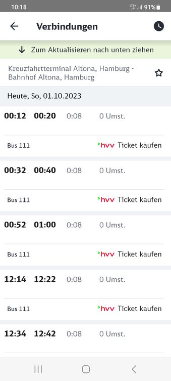 Der Bus 111 ab Cruise Center Altona zum Bhf Altona fährt Sonntags aber erst ab 12 Uhr Mittags