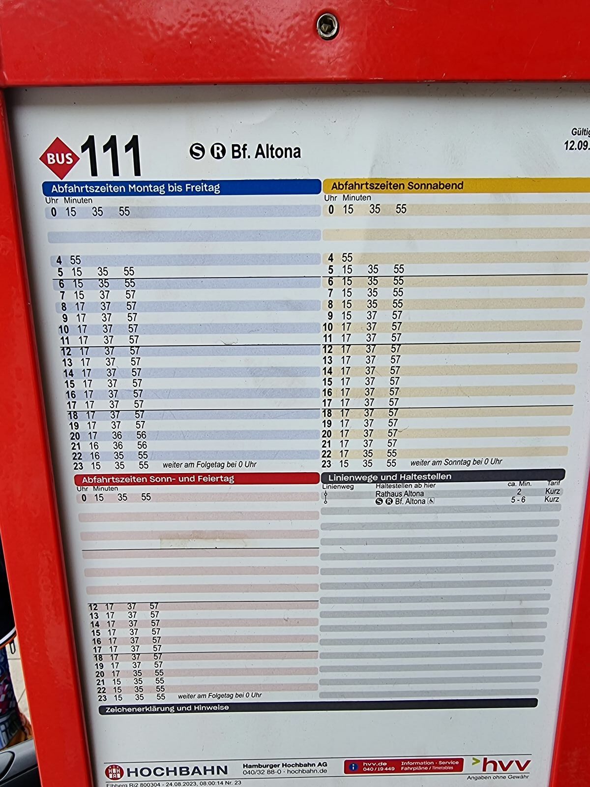 Der Bus 111 ab Cruise Center Altona zum Bhf Altona fährt Sonntags aber erst ab 12 Uhr Mittags