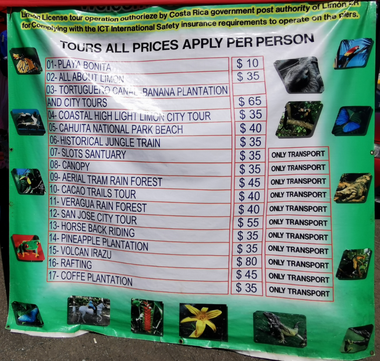 Ja, wir waren mit der Luna da. Genau, der Kapitän sagte durch, man sollte seine dicke Kamera und Uhren, Klunker bitte an Bord lassen. Dazu empfahl er die Reederei-Ausflüge, sagte aber, dass er das nicht macht um uns die Ausflüge anzudrehen. Zusätzlich hatten wir uns bei der Ausflugsberatung erkundigt, die uns auch ehrliche und gut gemeinte Tipps gegeben hat. Das gleiche galt auch für Panama bzw. dort noch mehr.
