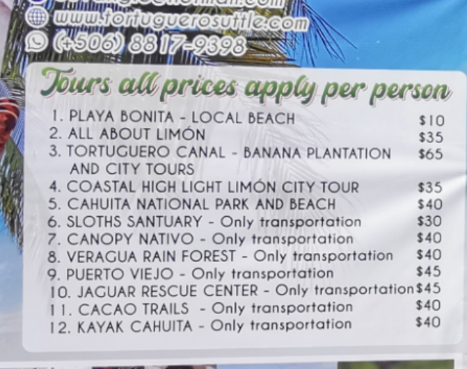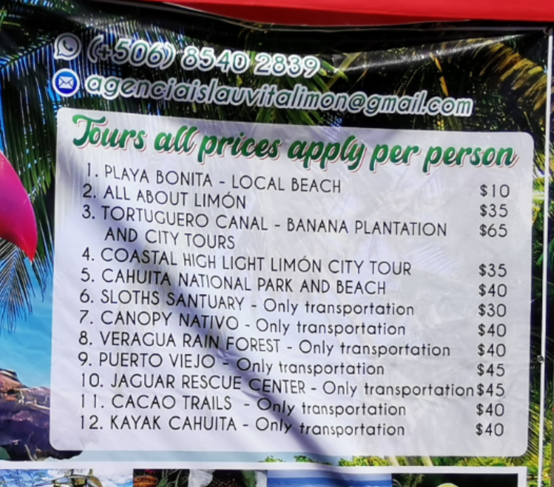 Ich kann Gabi Höbart und ihr Team wärmstens empfehlen. Der Kontakt war prima, die Tour sehr anstrengend ( das Klima war extrem an diesem Tag ), aber einfach nur großartig. Sie bietet verschiedene Touren an, wir waren im Cahuita- Nationalpark und auf den Tortuguerokanälen. Ich glaube, dass es nicht ratsam ist, auf eigene Faust die Region zu erkunden.