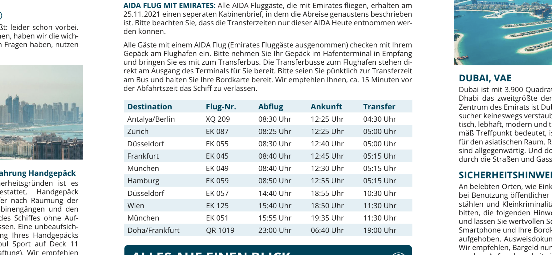 3. Emirates-Gäste checken direkt im Hafenterminal am Vortag ein! Das bitte bei der Ausflugsplanung beachten: