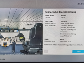 Habe da mal eine ganz spezielle Frage hier ins Forum. Wir sind vom 05.10. - 12.10.24 auf der Nova. Unser Sohn feiert dort seinen Geburtstag und möchte sich bei dieser Gelegenheit wenn möglich mal die Brücke anschauen. Da wir eine Veranda Comfort Kabine gebucht haben und keine Suite könnte es bei dieser Angelegenheit etwas schwierig darstellen , so eine Führung zu buchen. Wer hat schon Erfahrungen mit dieser Thematik gemacht ?