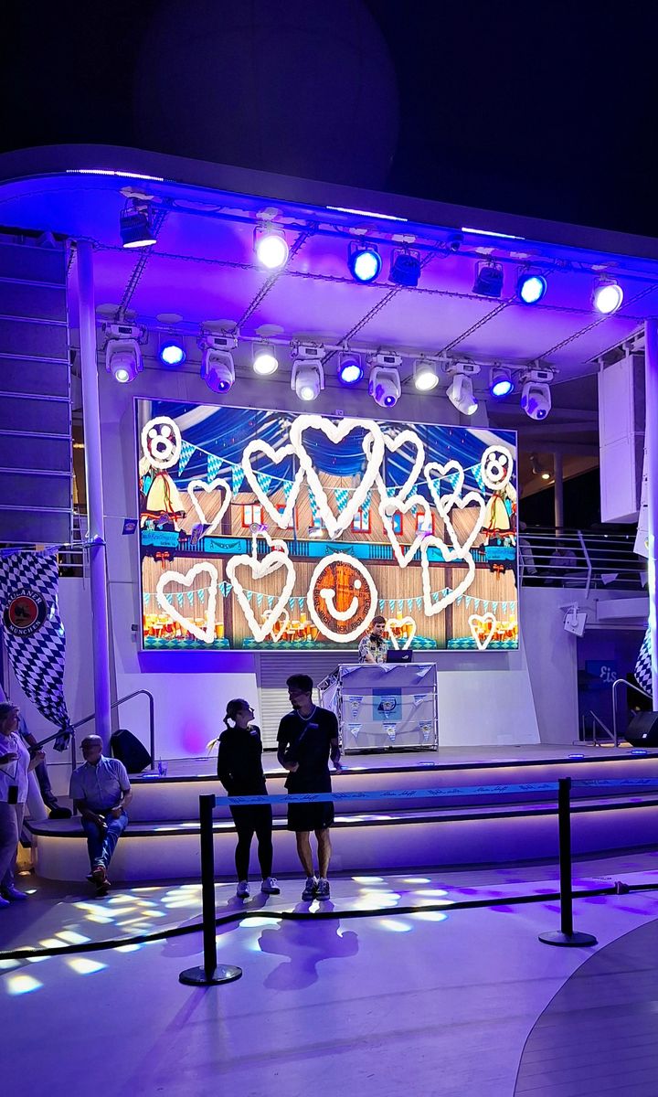 Bei bestem Wetter und 4 Seetagen genau eine sehr lahme Poolparty, kein Schokobüfett oder ähnliches. Auch sonst während der Tour keinerlei Aktionen an Deck. Kenne ich eben anders und wesentlich besser vom Mitbewerber.