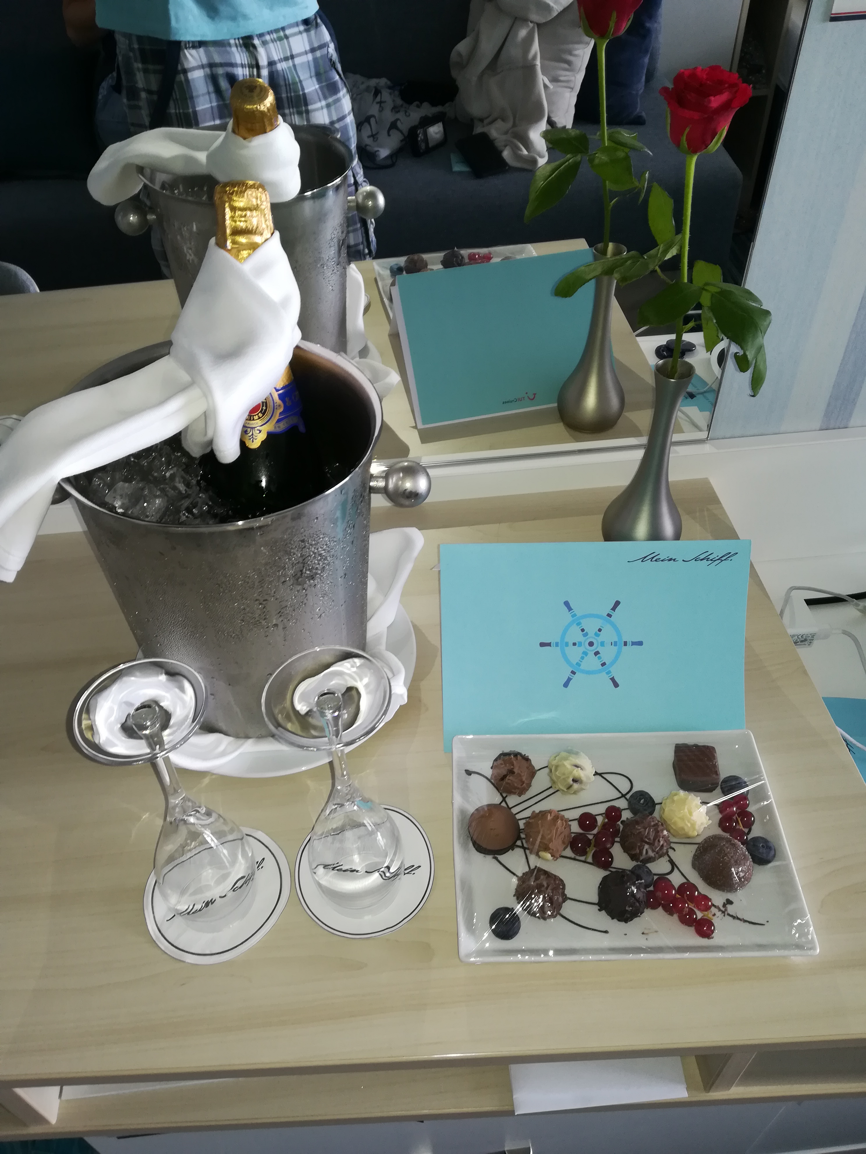 Nach mehreren Jahren TUI-Abstinenz fahren wir im Mai auch mal wieder und wurden schon per Mail informiert, dass wir als "Stammkunden" bei Anreise eine Aufmerksamkeit auf der Kabine vorfinden werden. Hatten wir selbst gar nicht erwartet. Wenn ich das richtig sehe, werden es für unsere 3. Reise wohl Gutscheine für Pralinen und Champagner sein. Nehmen wir doch gerne mit, auf die paar Kalorien mehr kommt es dann auch nicht mehr an ...
