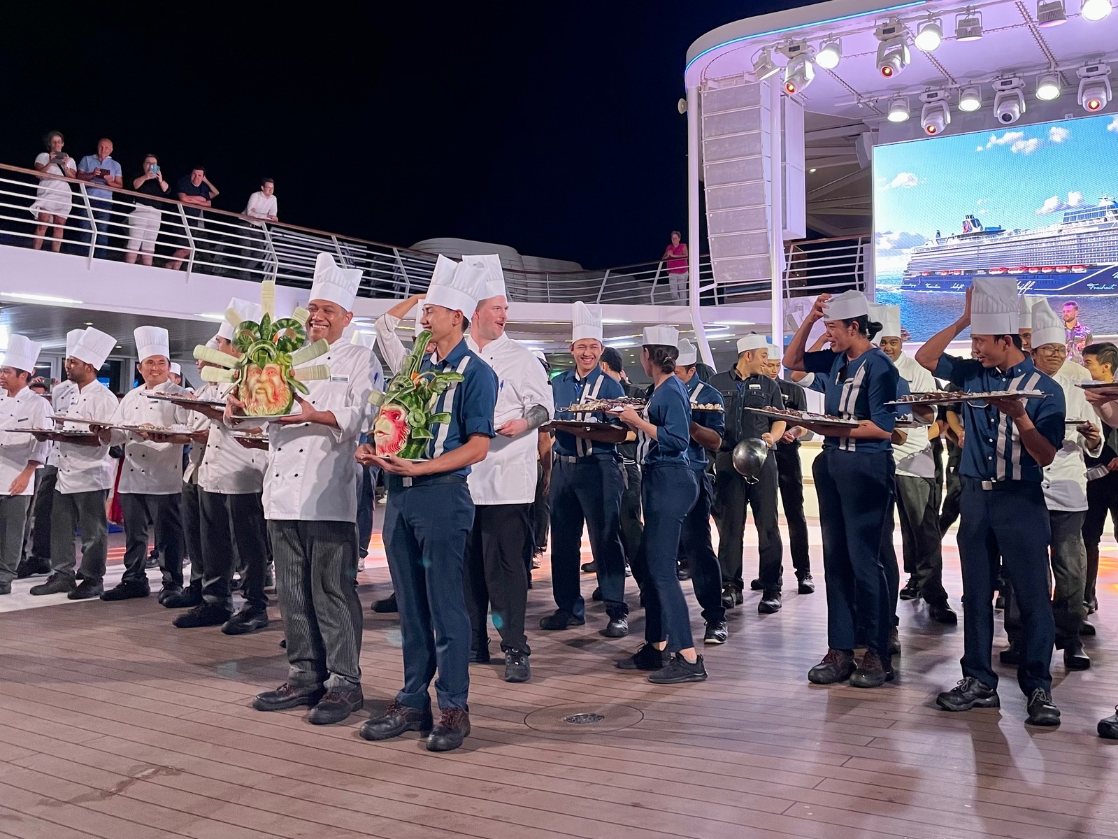 Bei bestem Wetter und 4 Seetagen genau eine sehr lahme Poolparty, kein Schokobüfett oder ähnliches. Auch sonst während der Tour keinerlei Aktionen an Deck. Kenne ich eben anders und wesentlich besser vom Mitbewerber.