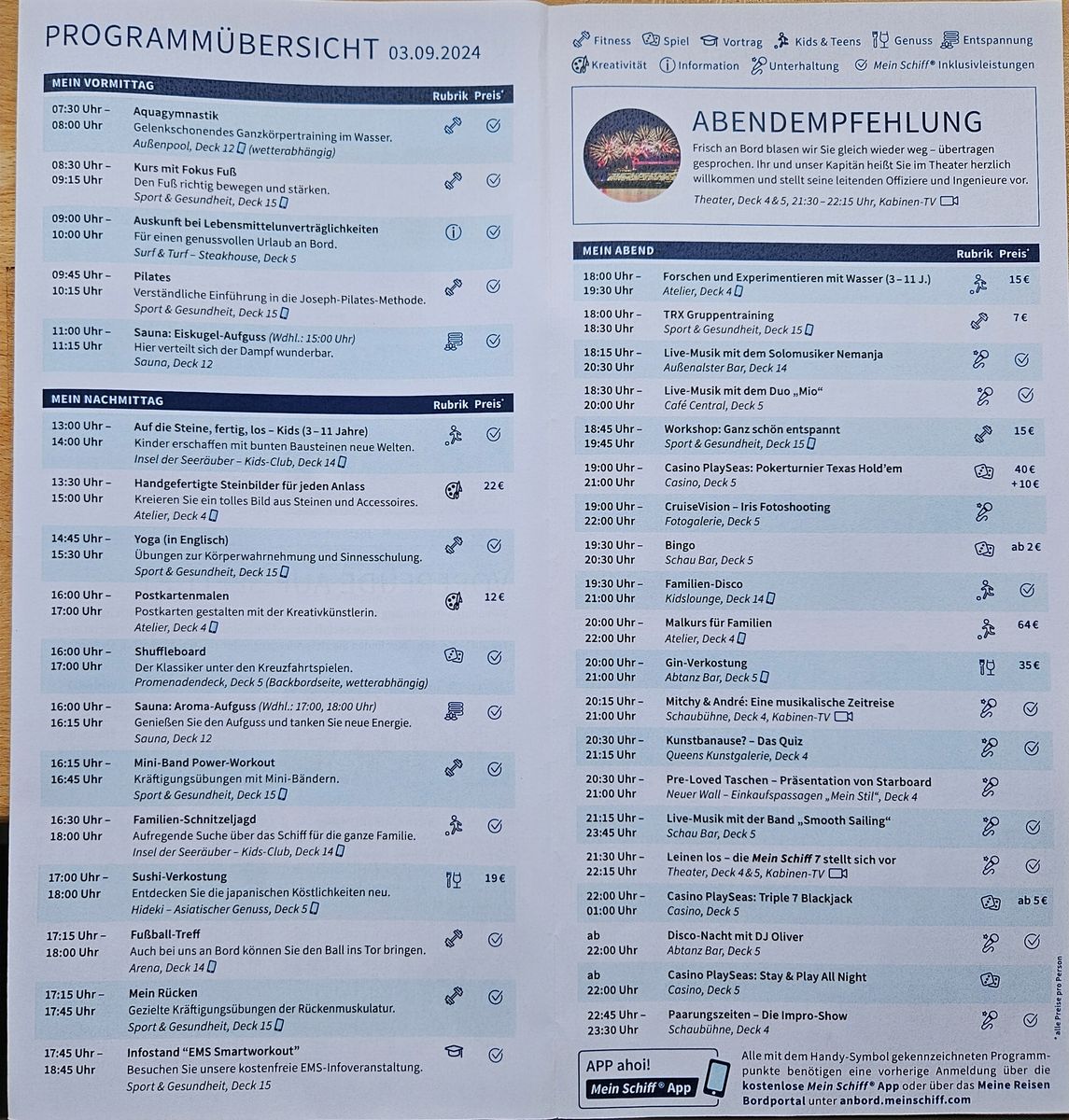 Bei AIDA gibt immer dieses tolle Programmheft (noch). Ist das bei MS auch so?