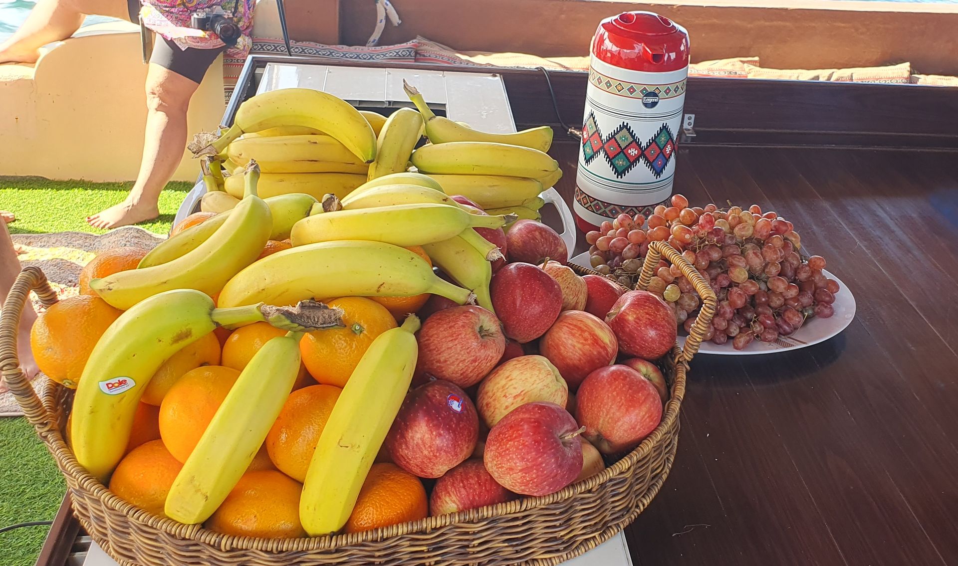 entschieden. Kostenpunkt mit Abholung am Schiff, Getränken, Essen, Handtüchern und Ausrüstung zum Schnorcheln lag bei 55€ und wurde in Bar im Bus vom Cruise Terminal zur Dhau kassiert.