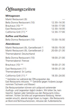 Ich habe mir mal die Öffnungszeiten in den Bordzeitungen meiner letzten Kreuzfahrten angesehen