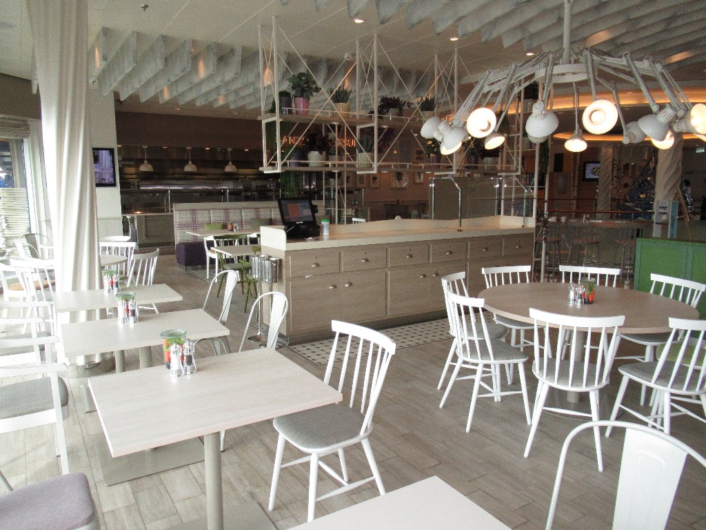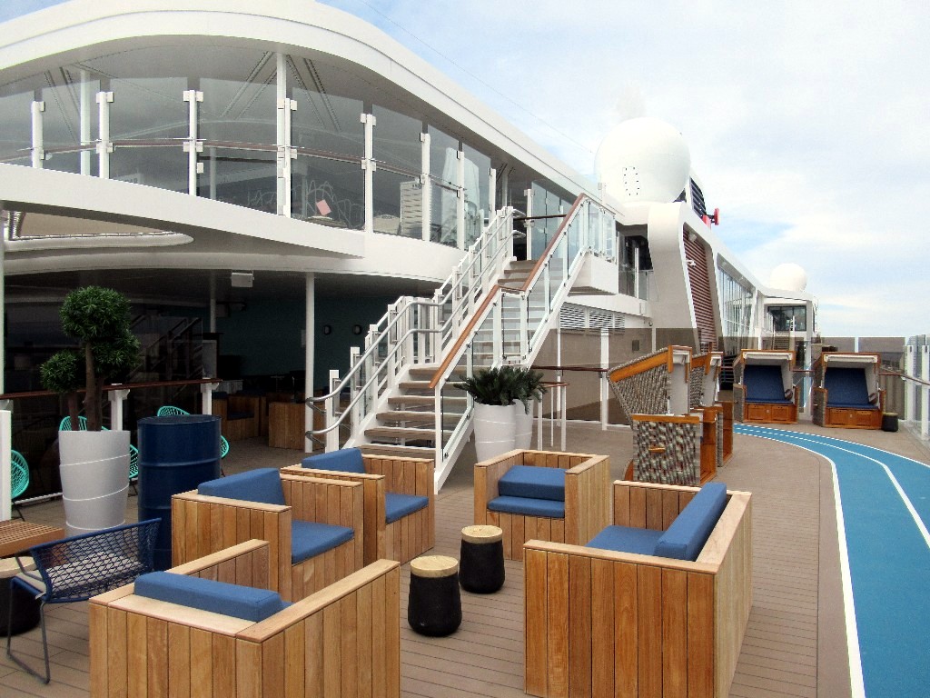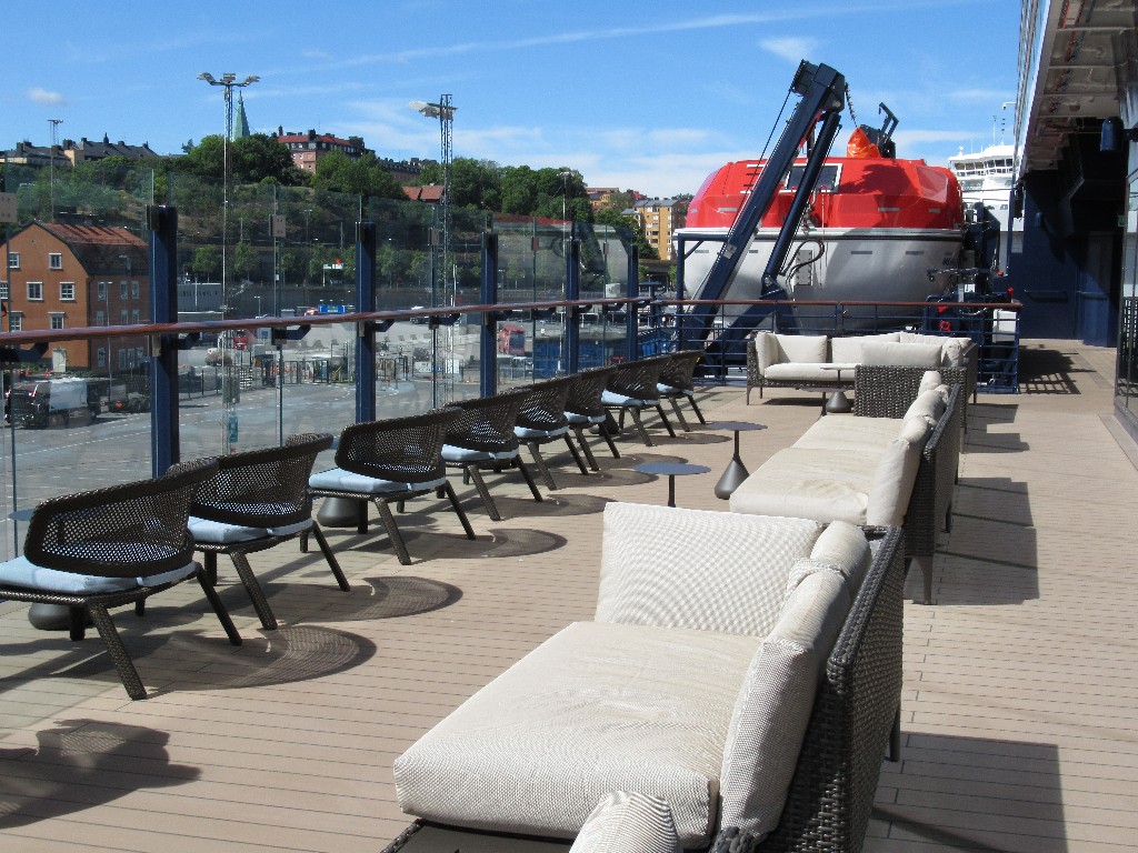 Im Bereich der Restaurants auf Deck 5 gibt es auch Außensitzplätze (es gibt zwischen den Rettungsbooten auf beiden Seiten unterschiedliche Sitzplätze)