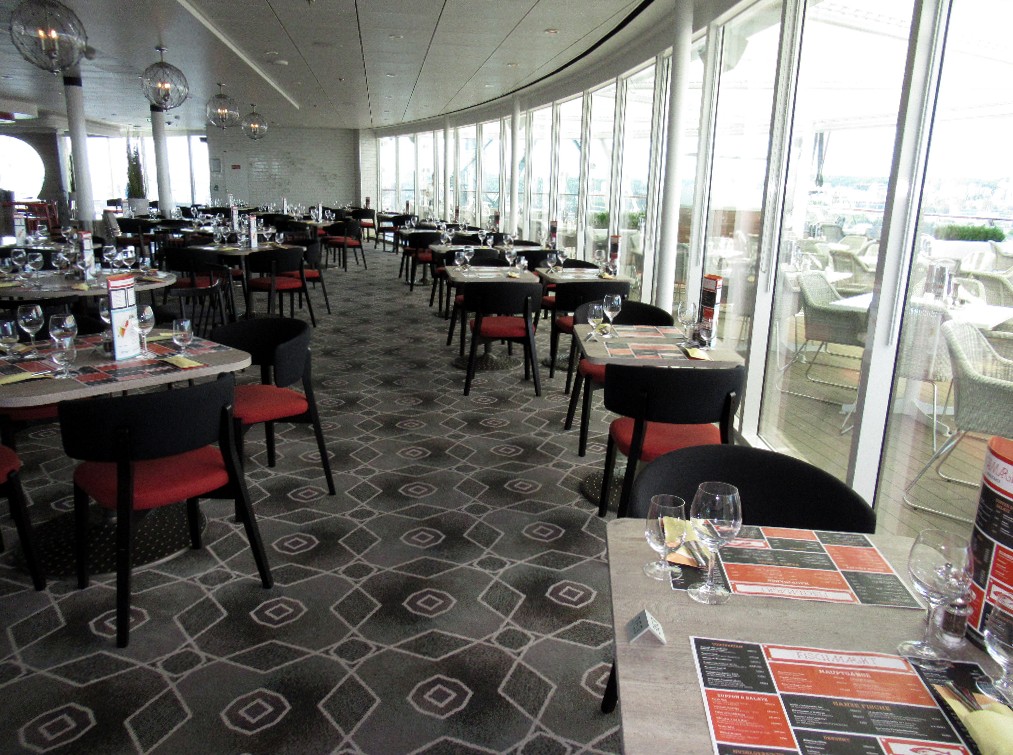 Die faszinierende "Wendeltreppe" zwischen den beiden "Atlantk-Bedienrestaurants" und dann hoch zur "Schaubar" gibt es auf der Mein Schiff 1 nicht mehr