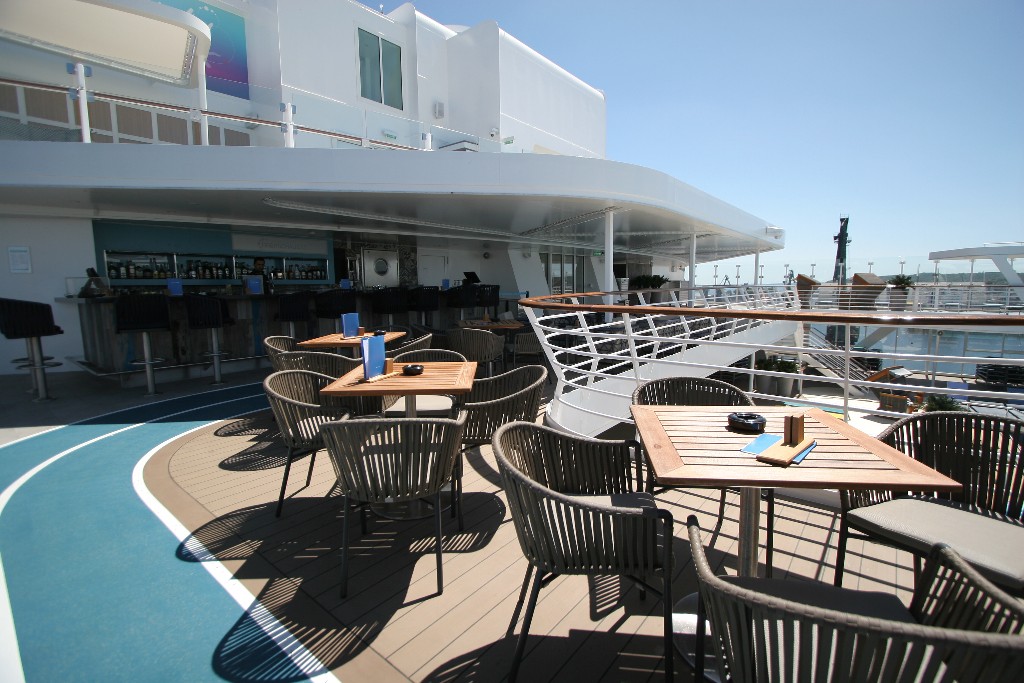 Auf dem Poodeck gibt es auch die Liegen und Stühle mit der dicken,grauen Polsterung wie auf der Mein Schiff 6