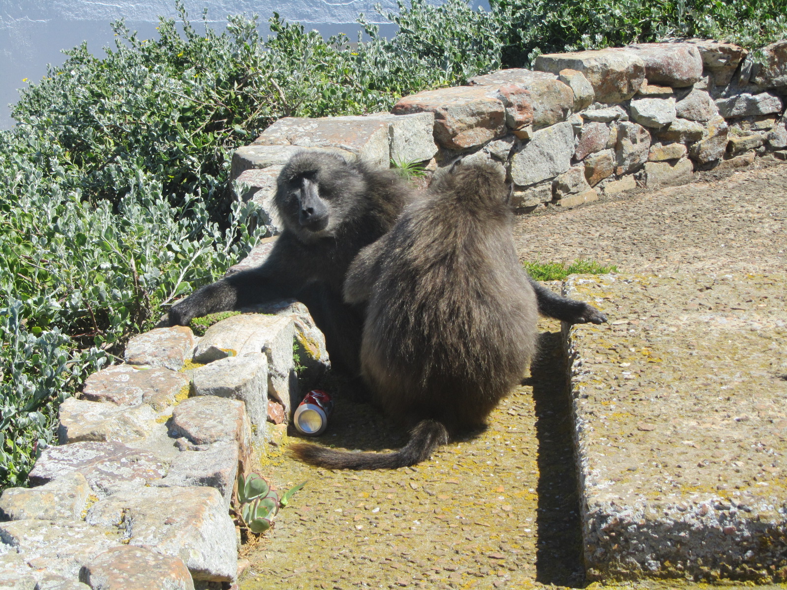 Aber alle Sachen ordentlich festhalten. Die Affen sind (genauso wie die putzigen Dazzies - oder auch "Klippschliefer" - auf dem Tafelberg) extrem neugierig!