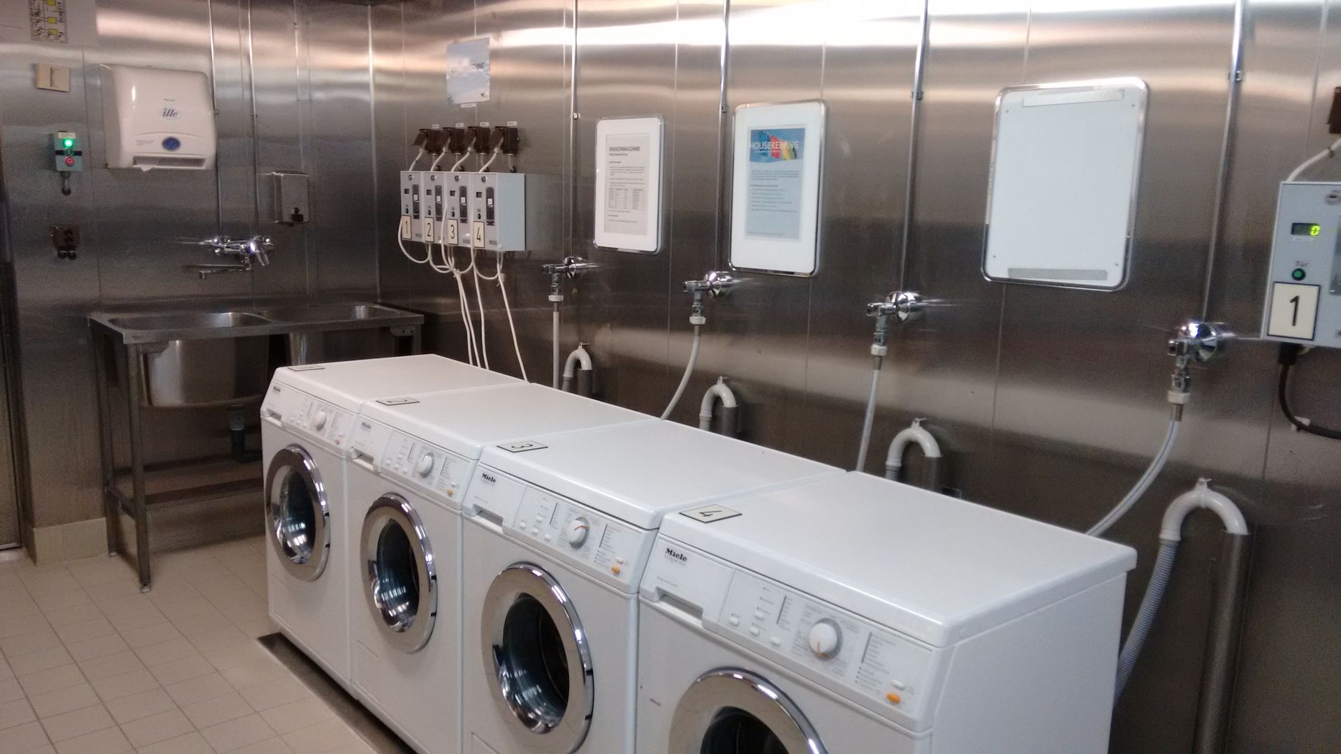 In eine Maschine passen nicht nur 4 Teile für insgesamt 5 Euro. Du kannst doch gleich mal ein paar andere Sachen mit hineingeben, und dann pro Stück deutlich kostengünstiger als der sonstige Waschservice an Bord.