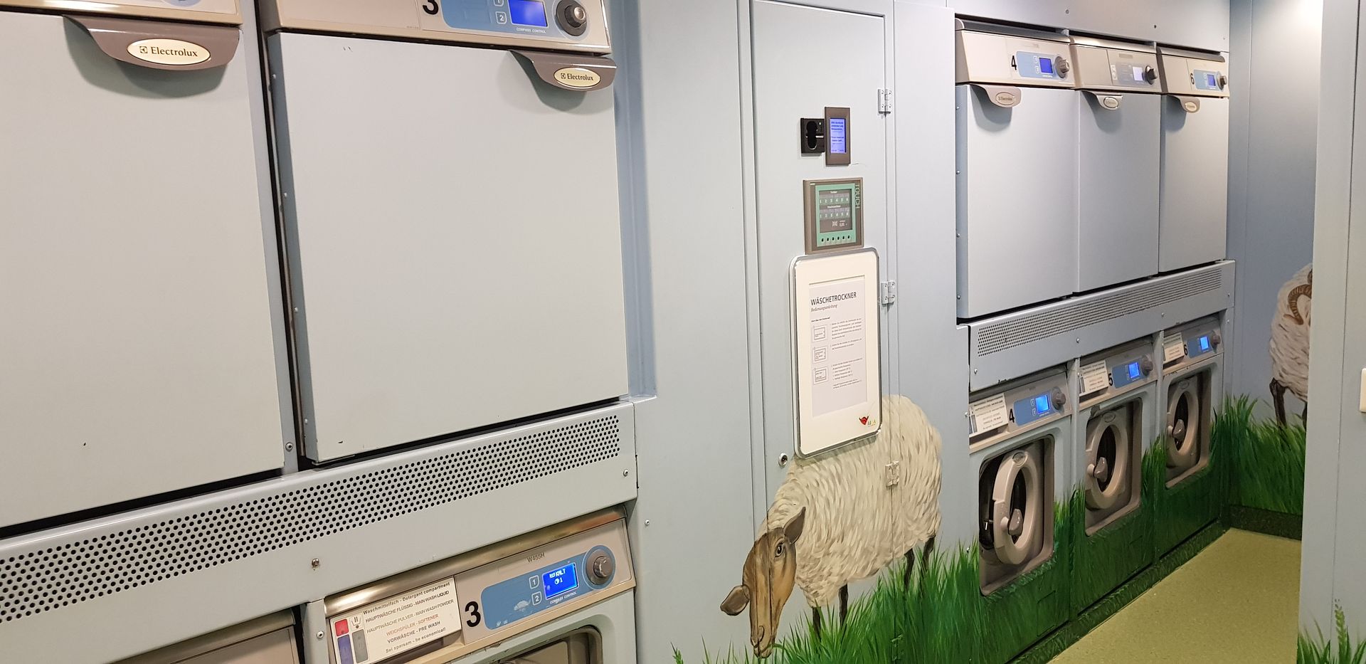 Waschsalon ganz normal 24/7 geöffnet, alle Geräte nutzbar.