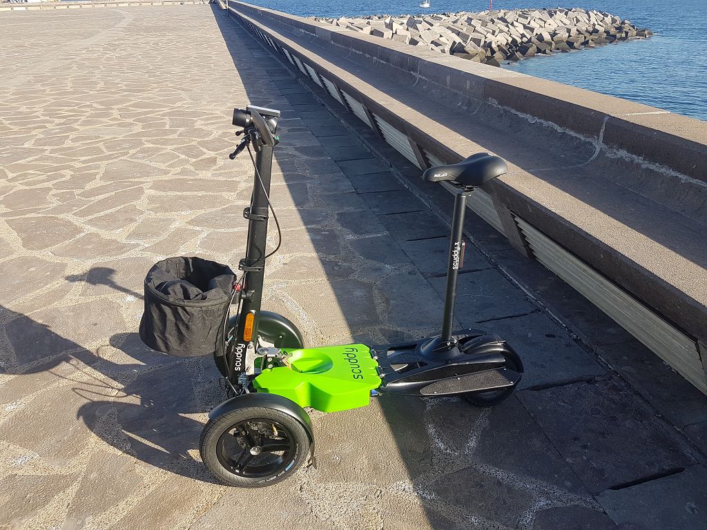 Auf Teneriffa haben wir am Hafen ein E-Mobil ausleihen können (bei Einem Vermieter für Fahrräder). Es war so toll für mich, ich war unglaublich mobil und mein Mann musste nicht schieben.