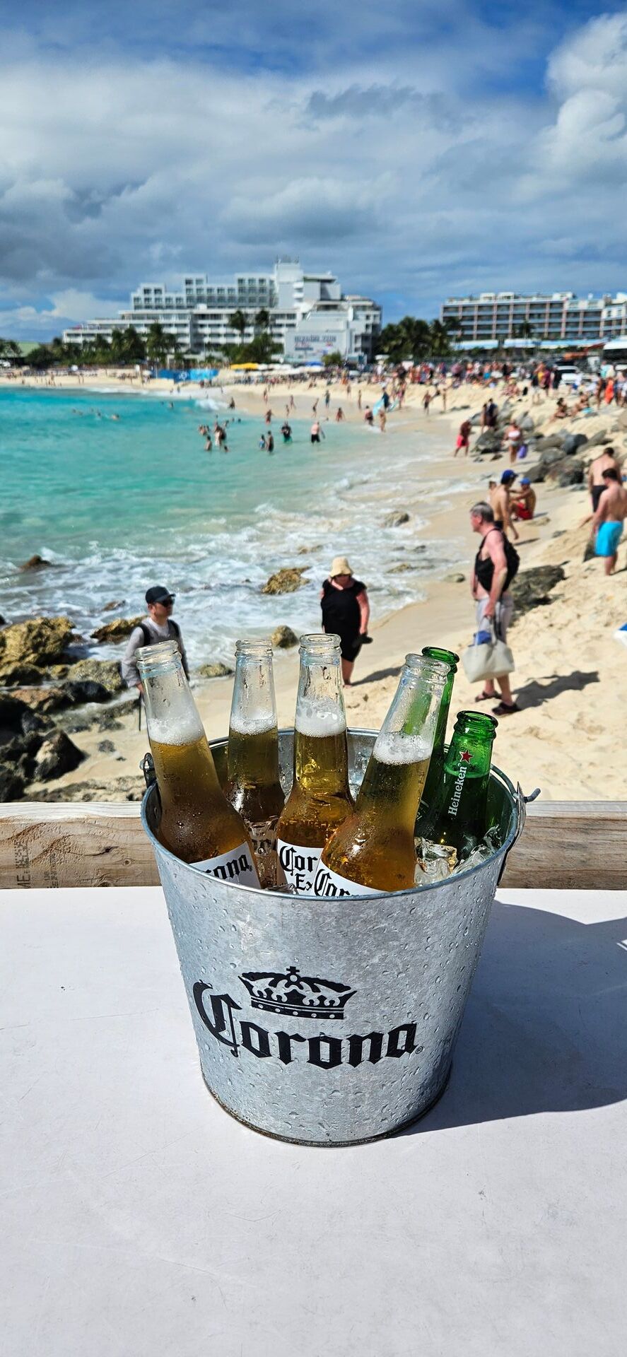 Das müsste dann der Mullet Beach sein. Da waren wir auch schon. 15 Minuten zu Fuß vom Maho Beach entfernt. Super toller Strand mit schöner Beach Bar.
